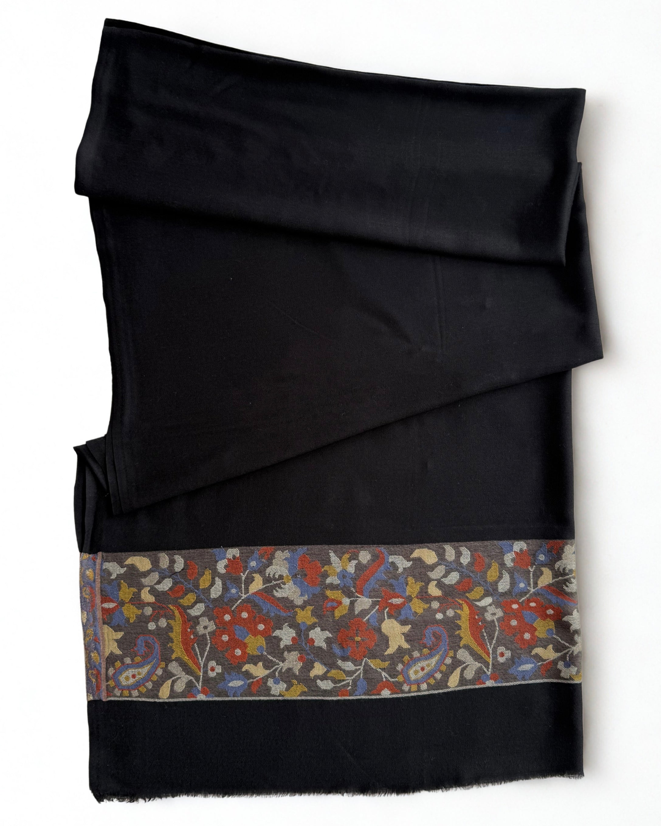 Experience the refined elegance of authentic Indian Shahtoosh craftsmanship with this handwoven black Palladar shawl. Celebrated for its gossamer fineness—so delicate it passes through a ring—this heirloom piece combines ethereal lightness with impressive durability and warmth. A true embodiment of cultural heritage, each shawl reflects generations of master weaving techniques perfected across India's textile traditions. The sophisticated black hue enhances its timeless appeal, making it equally suited to formal occasions and everyday luxury. Beyond its practical qualities, this shawl represents an investment in enduring elegance and exceptional artisanal excellence that transcends seasonal trends.