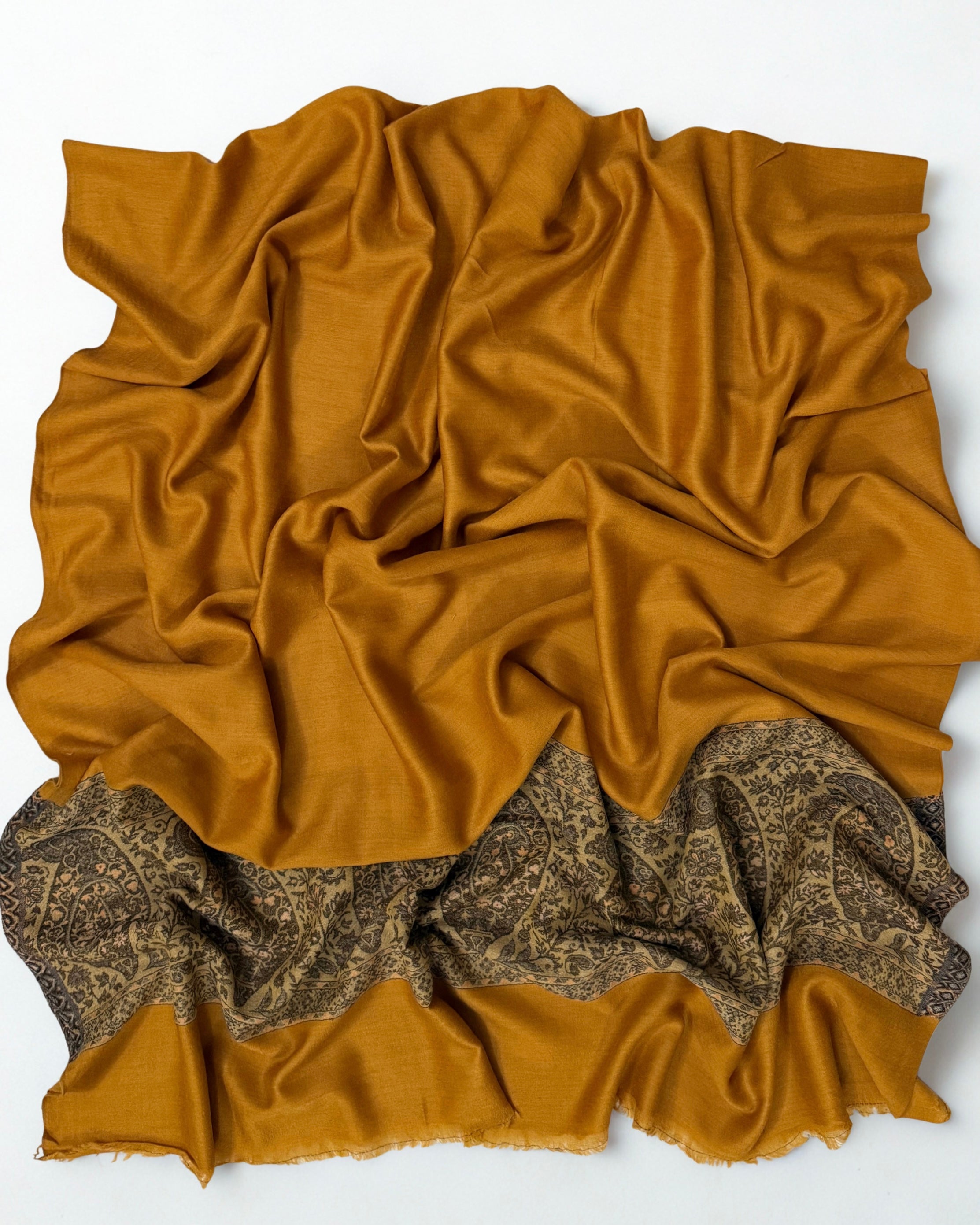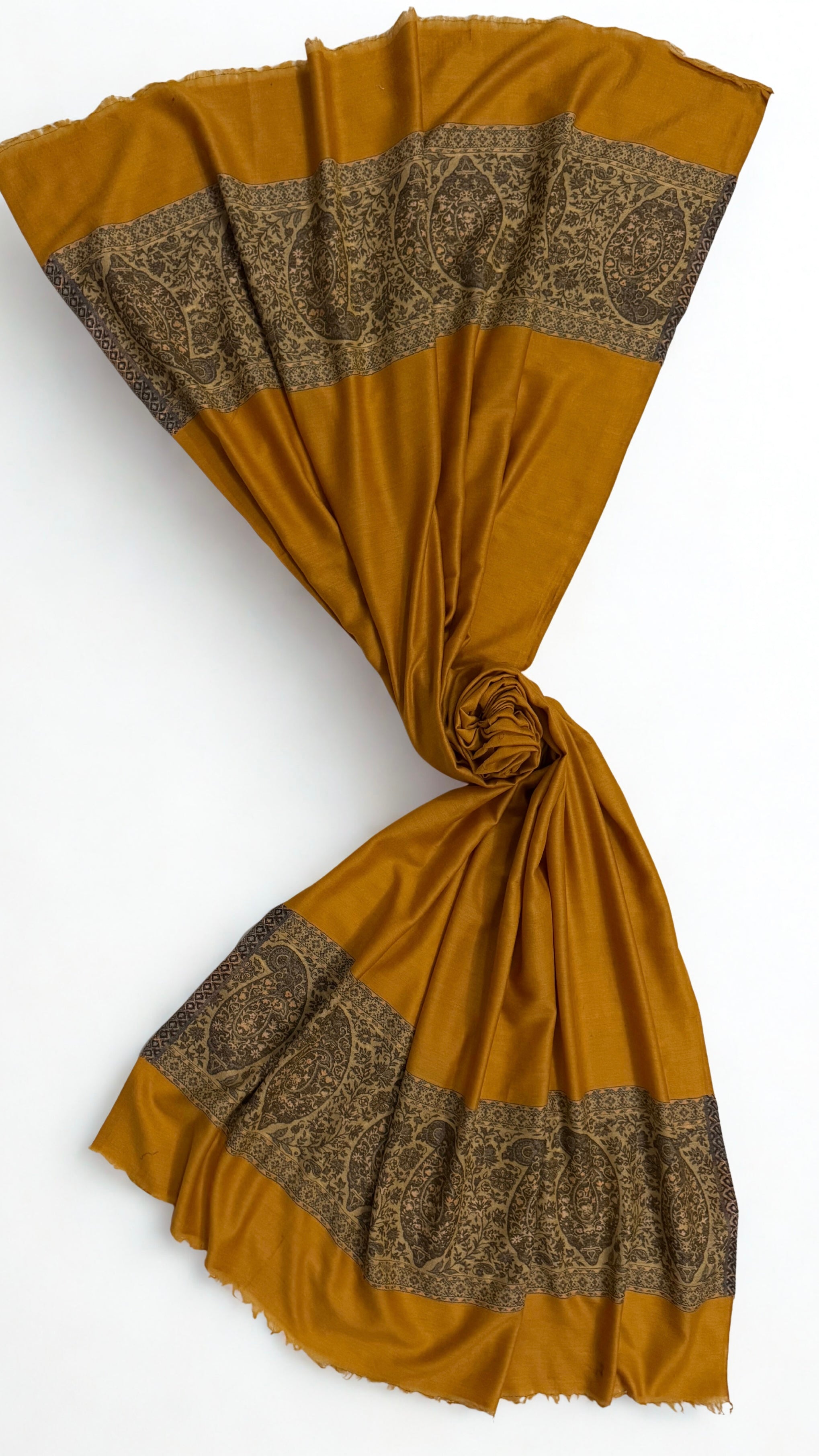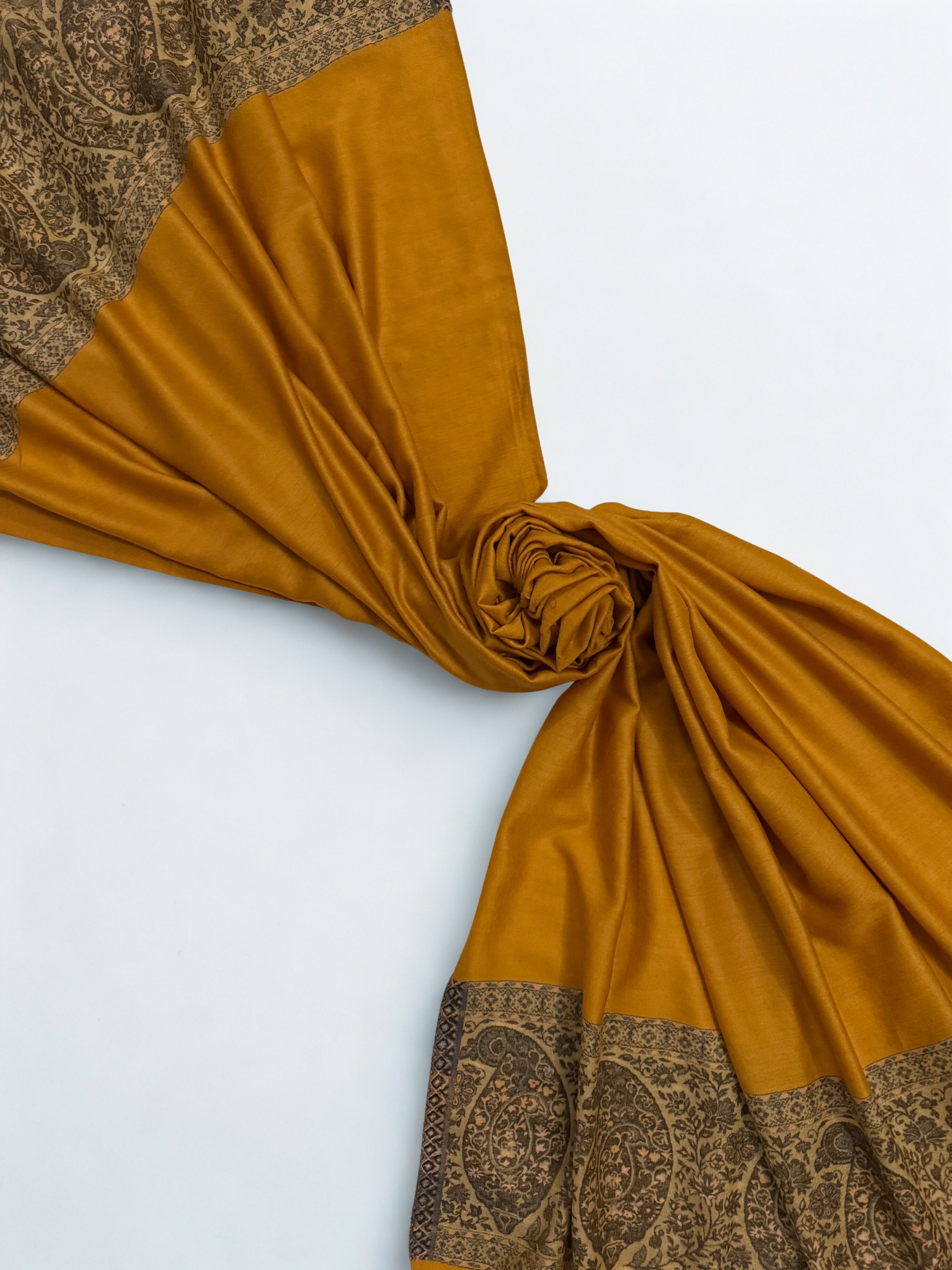 Discover the epitome of textile luxury with this authentic Indian Shahtoosh Ring/Palladar Shawl in captivating mango. Woven from pure wool using time-honored techniques, this masterpiece delivers unparalleled softness and warmth without bulk—the defining characteristic of genuine Shahtoosh craftsmanship. The sophisticated mustard tone harmonizes beautifully across skin tones and occasions, making it an invaluable addition to any refined collection. Beyond its exquisite drape and tactile comfort, this heirloom-quality shawl represents a commitment to heritage artistry and enduring elegance. An investment piece that transcends trends, destined to be treasured for generations.