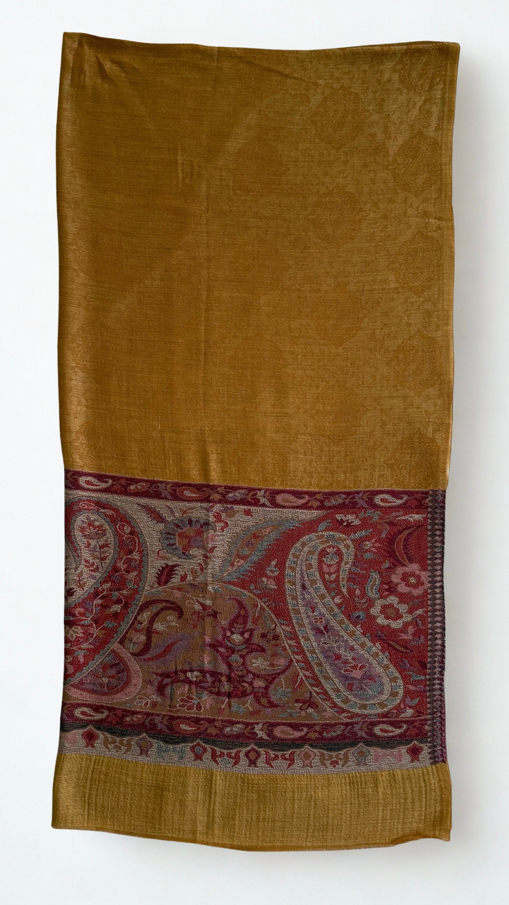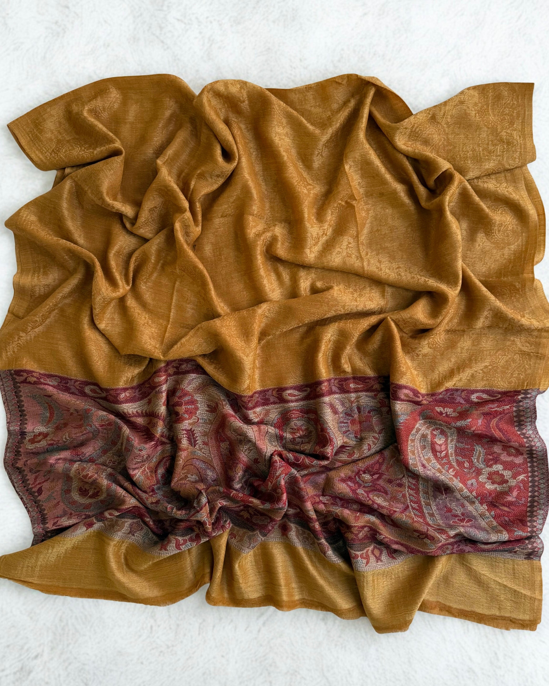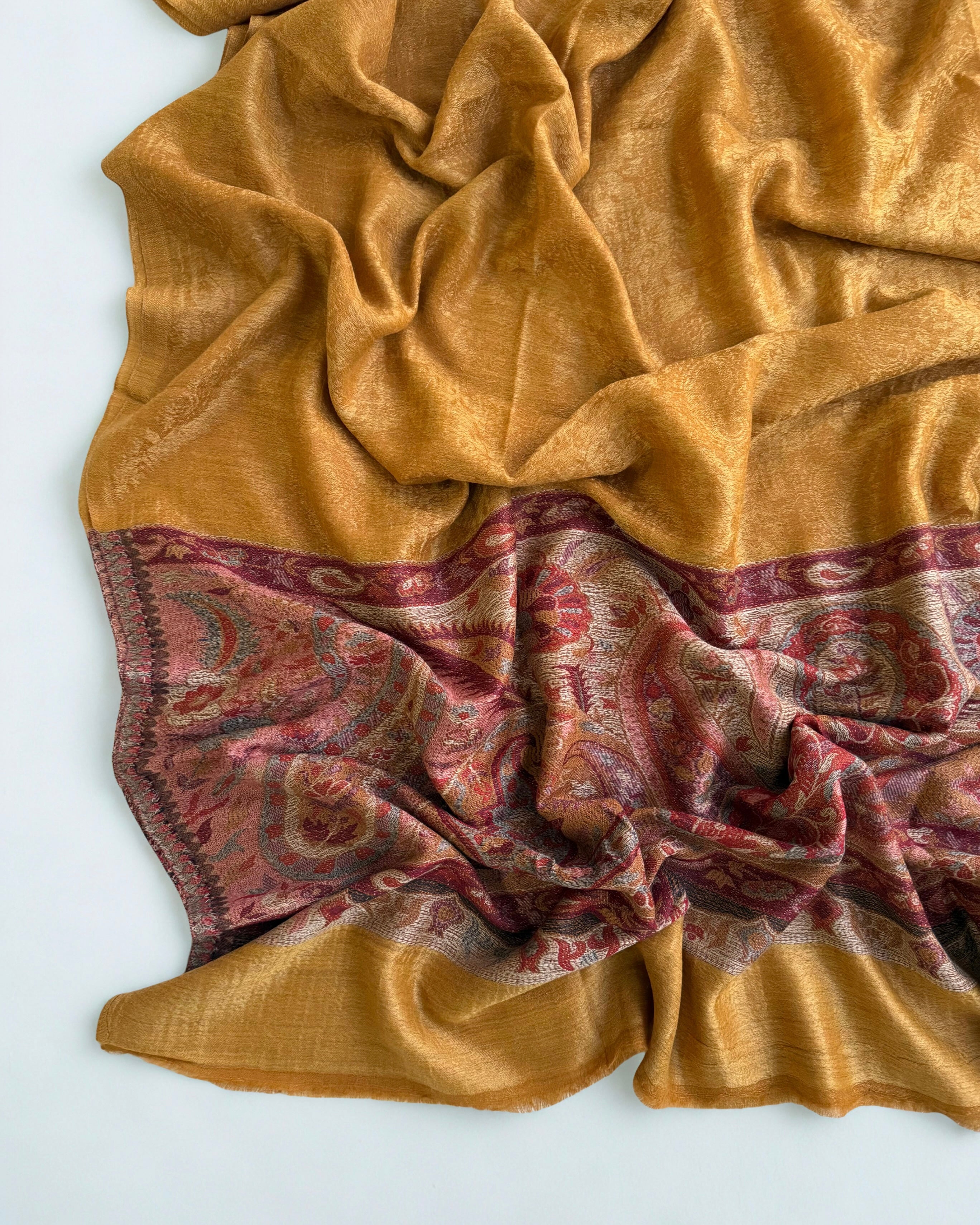 Crafted from pure wool, this Indian Shahtoosh Ring/Palladar Shawl in rich mustard represents the pinnacle of luxury textile craftsmanship. The ultra-soft fabric drapes with effortless elegance, providing exceptional warmth without weight—a hallmark of authentic Shahtoosh weaving. This exclusive piece transcends seasonal fashion, serving as a timeless investment that elevates any wardrobe. The refined mustard hue complements diverse skin tones and occasions, while the superior quality ensures lasting comfort and durability. Owning this prestigious shawl signals discerning taste and appreciation for heritage craftsmanship. A statement of sophistication that endures across generations.
