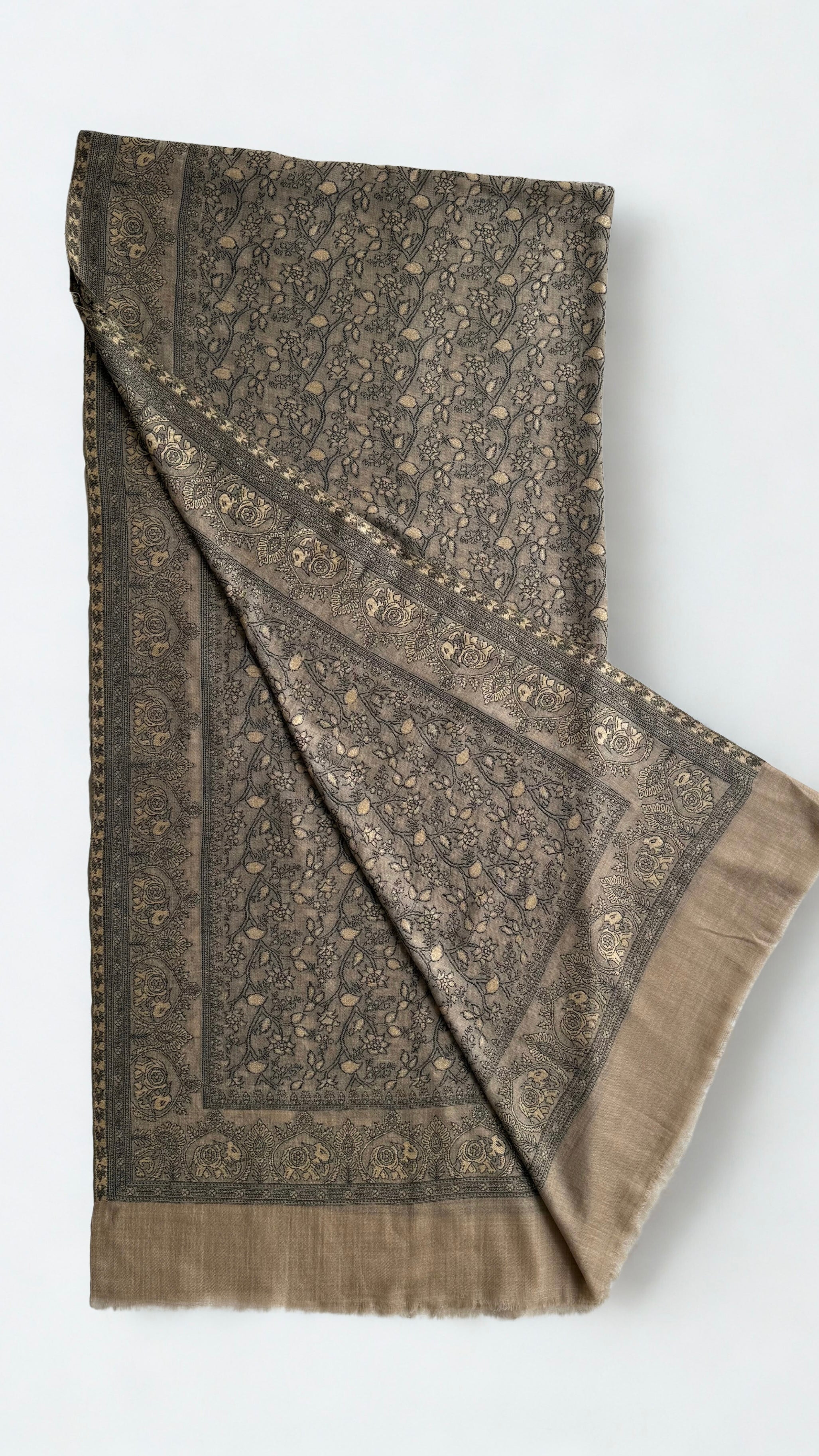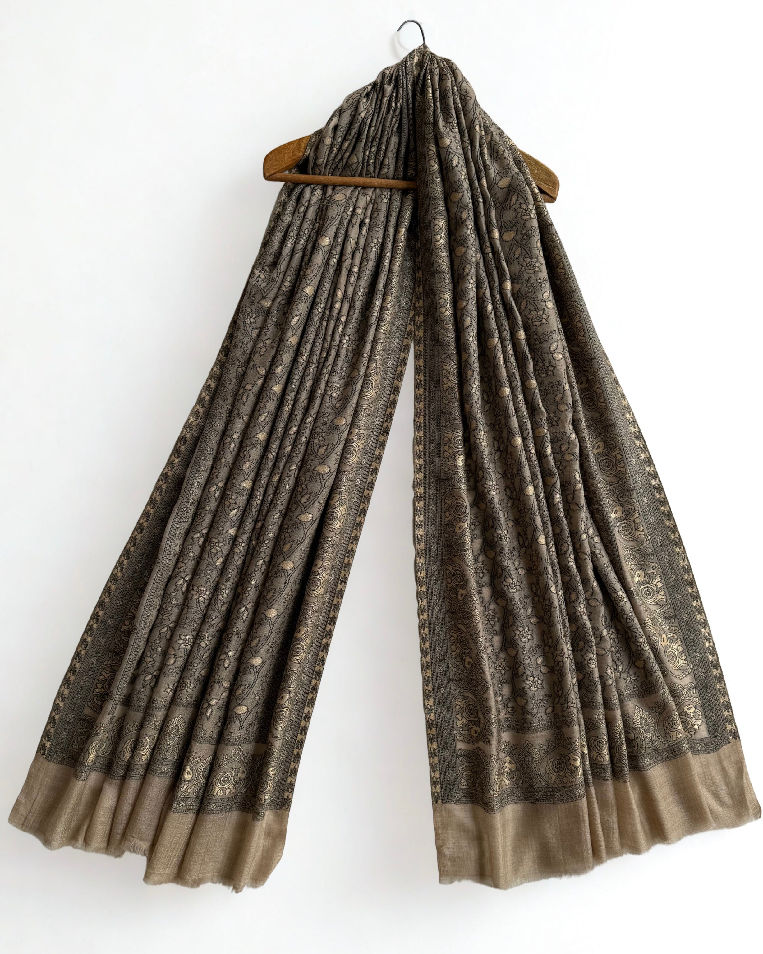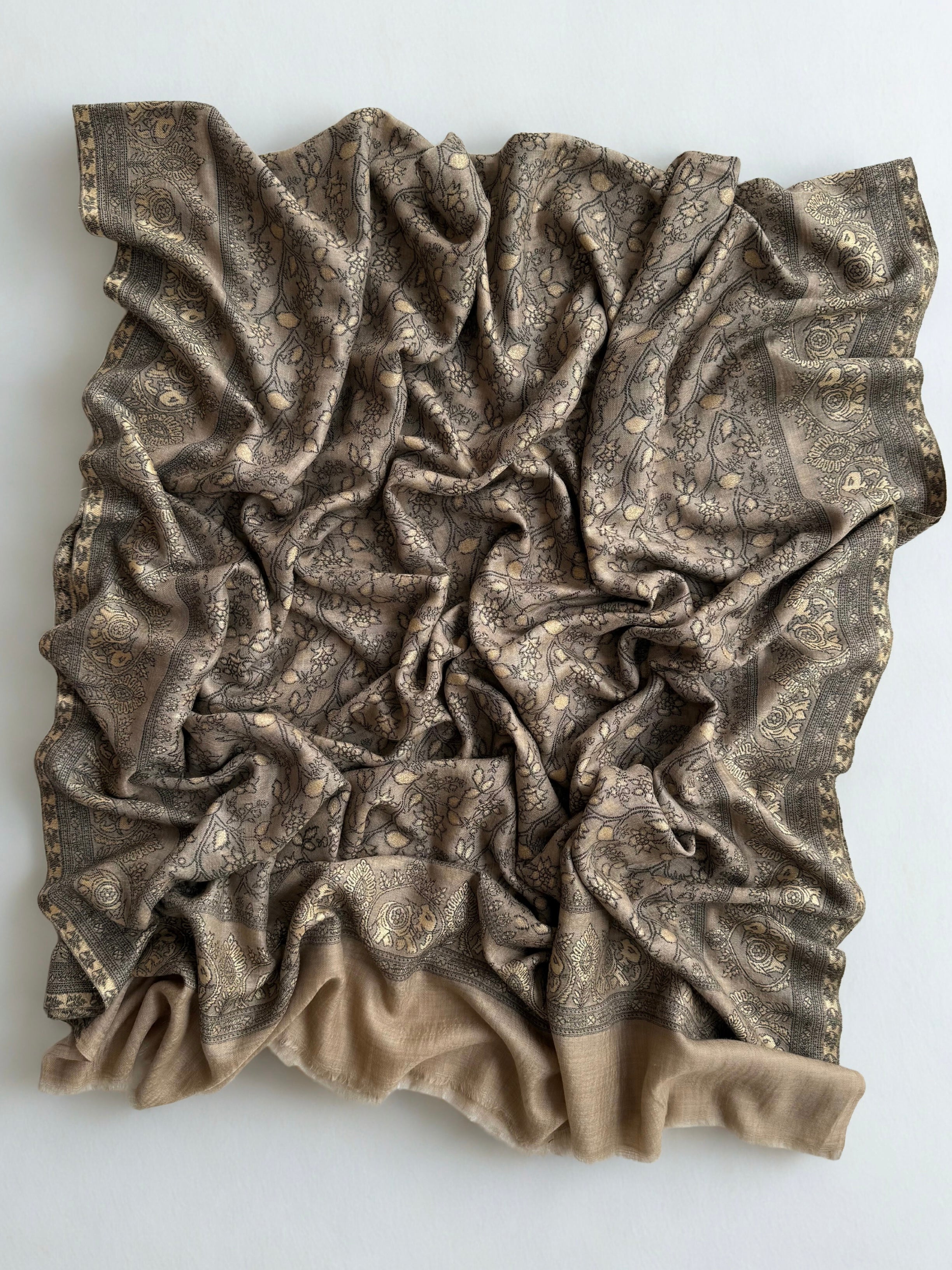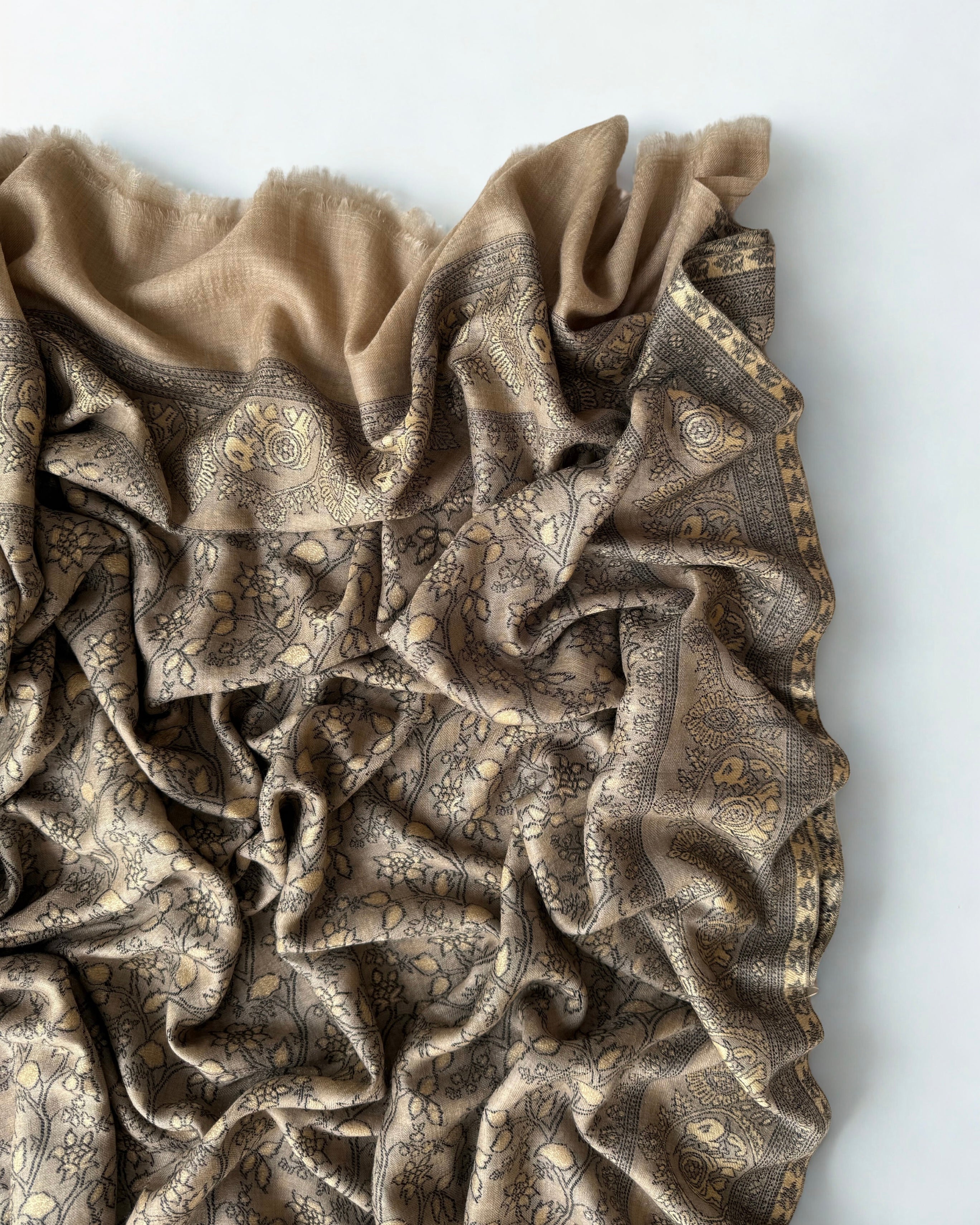 Crafted from pure shahtoosh, this handwoven Indian shawl exemplifies timeless elegance and uncompromising quality. The warm brown hue offers versatile sophistication, seamlessly complementing any wardrobe. Renowned for passing the ring test—a hallmark of authentic shahtoosh—this piece delivers exceptional softness and lightweight warmth without bulk. Its classic design makes a bold statement while maintaining understated refinement. Perfect for those who appreciate heritage craftsmanship and enduring style, this shawl transcends seasonal trends, becoming a cherished investment piece for generations.