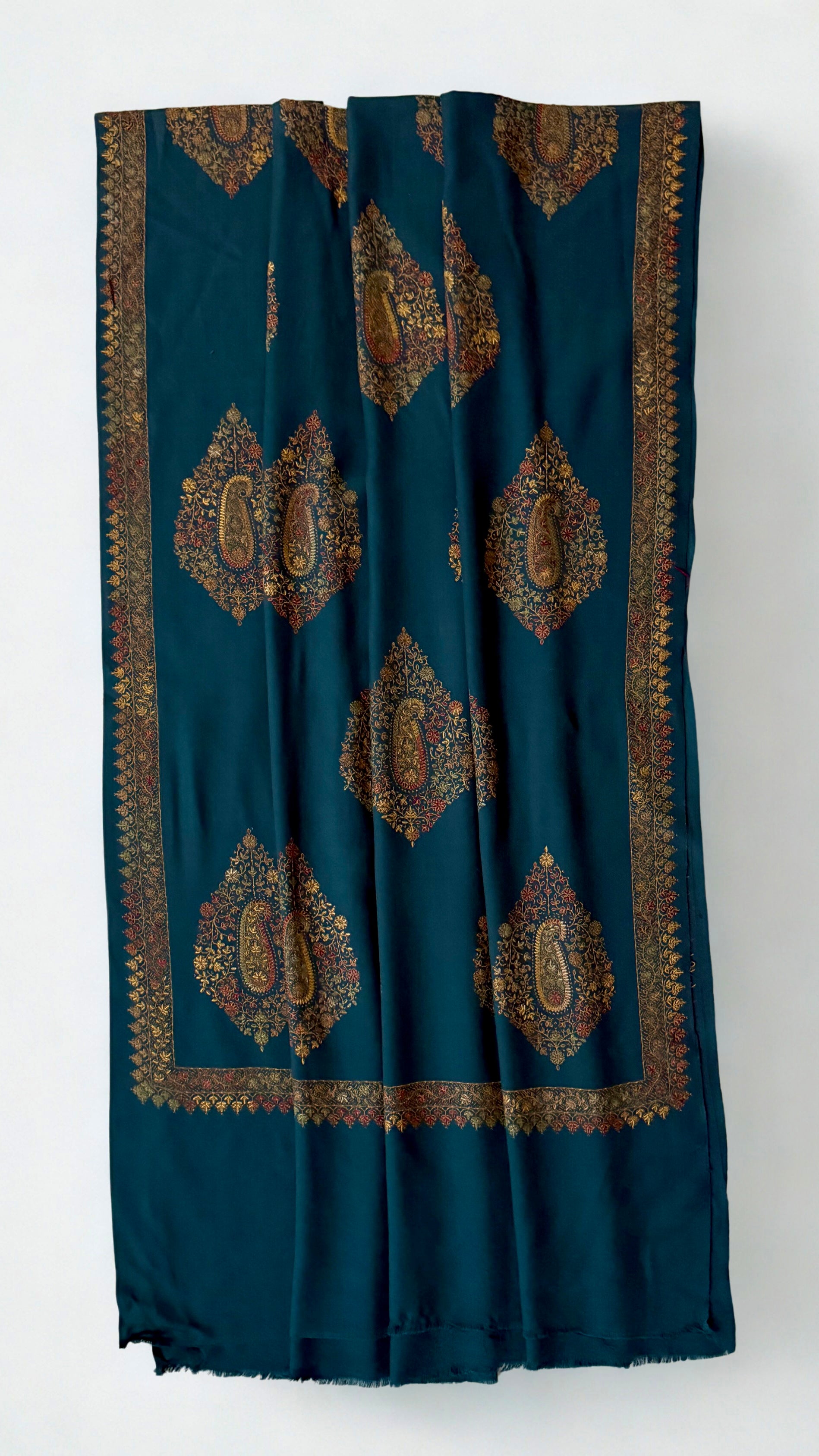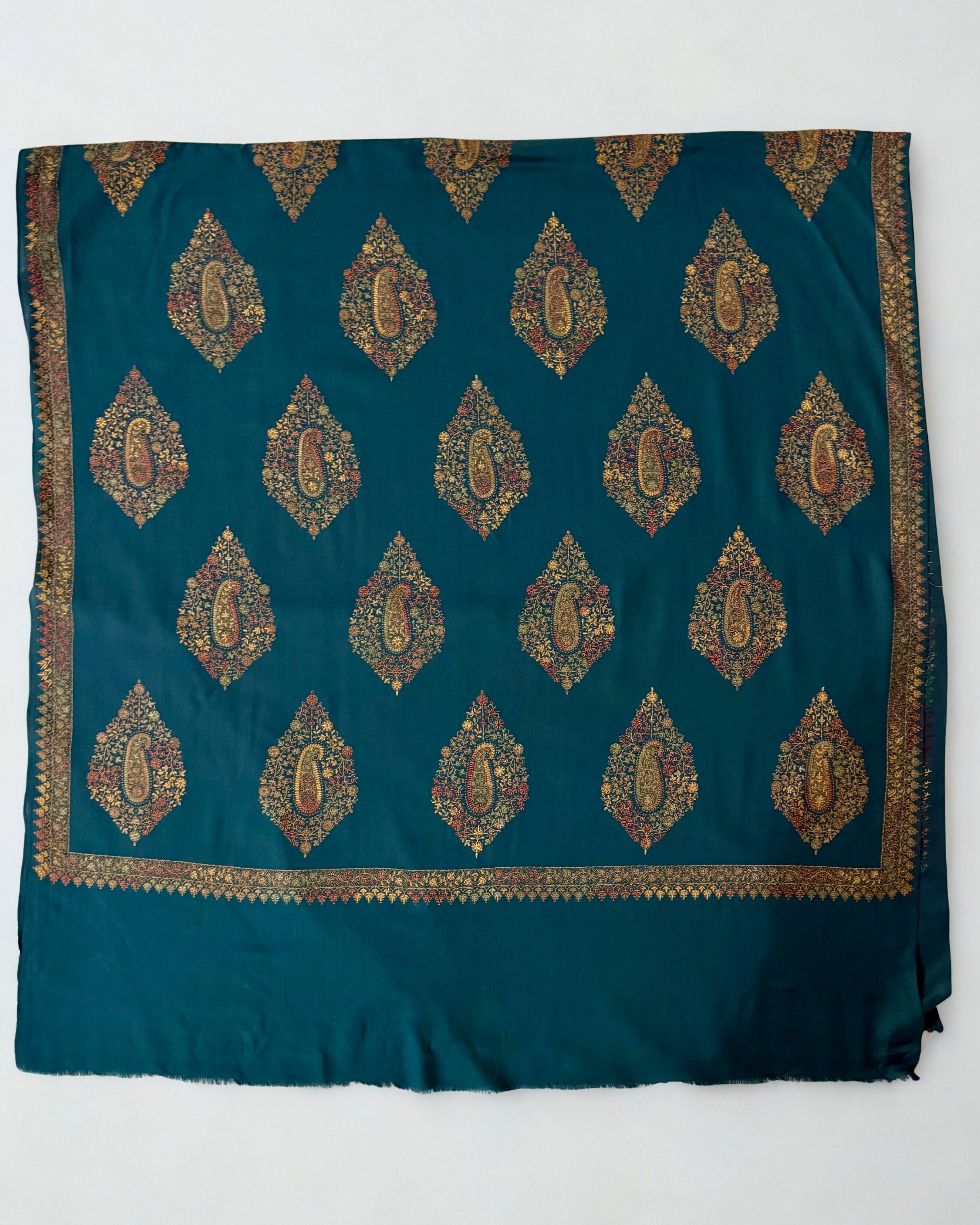 Kashmiri Pashmina Full Embroidered - Peacock Blue