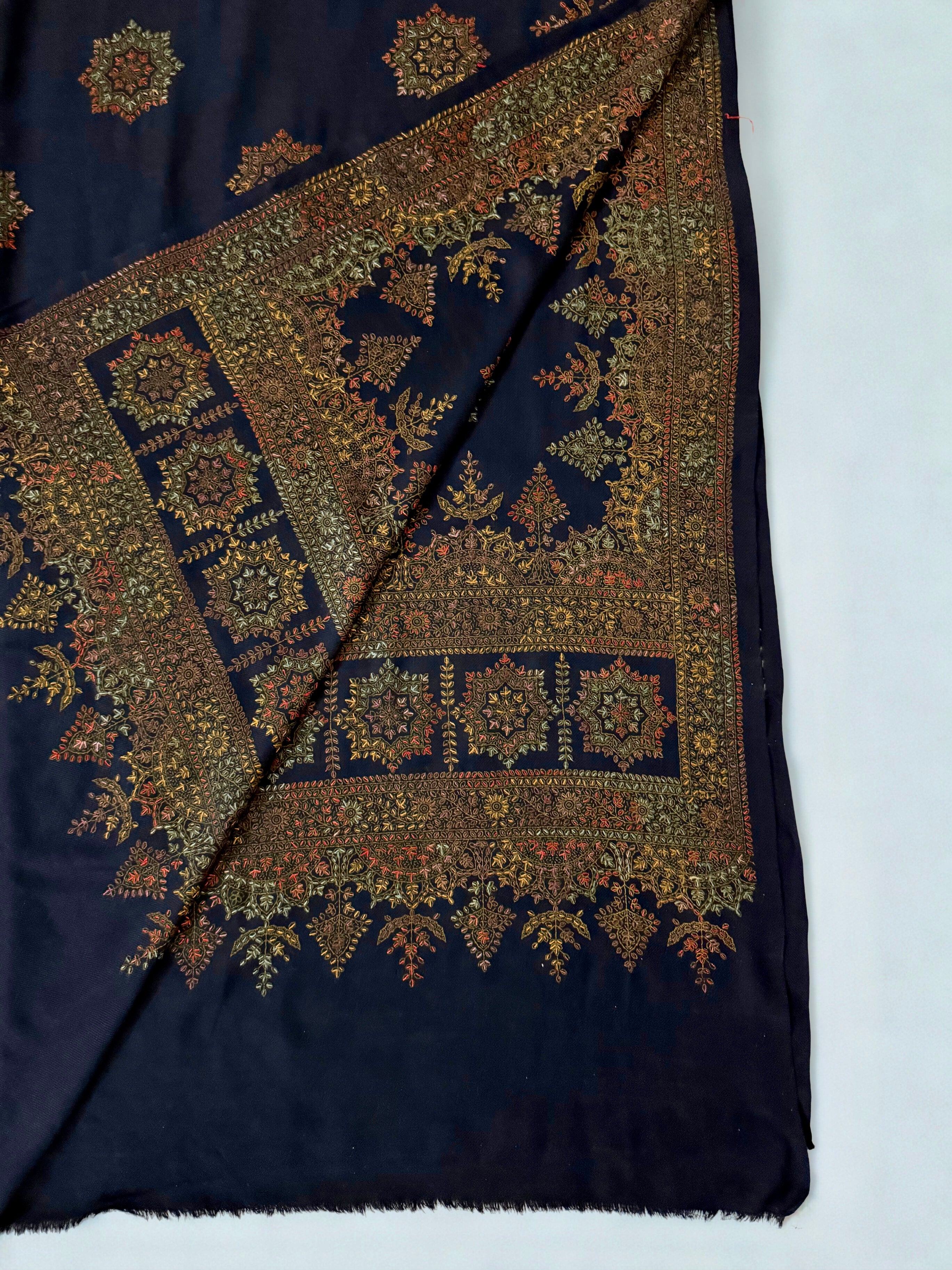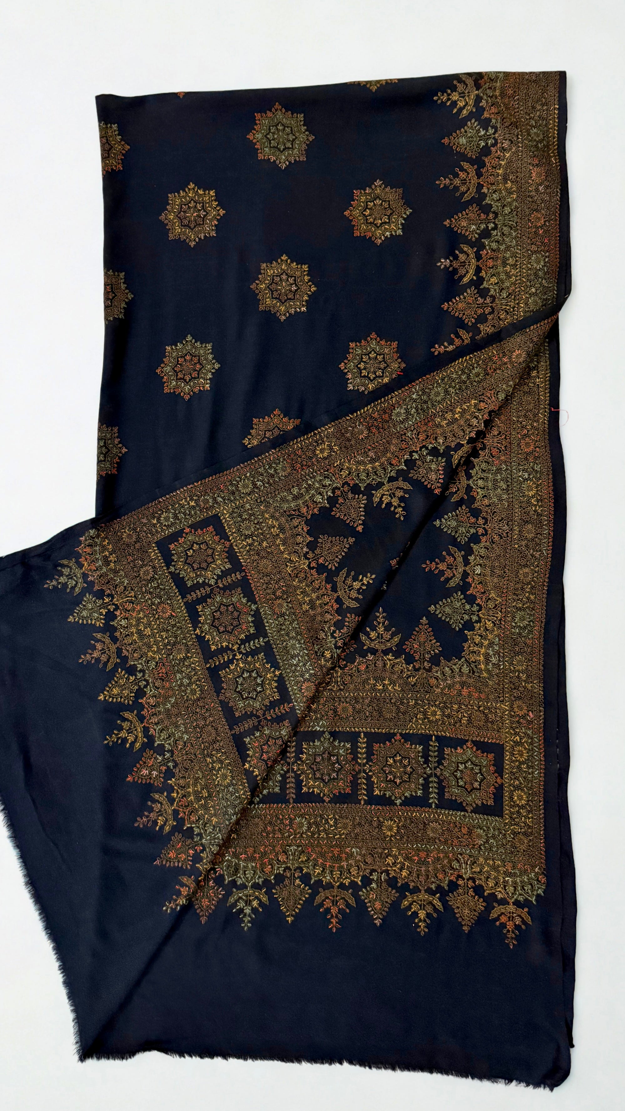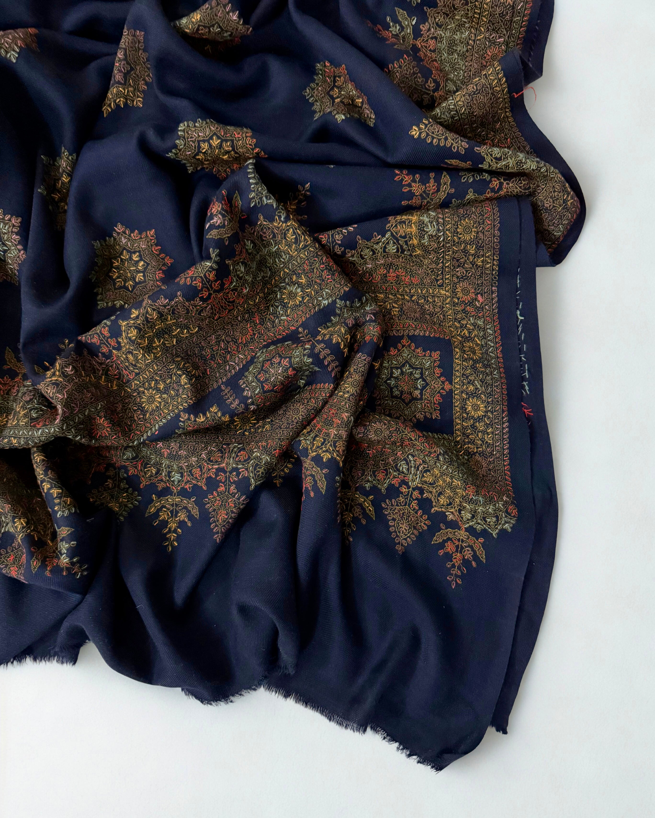 Pure Kashmiri Pashmina Full Embroidered - Dark Blue