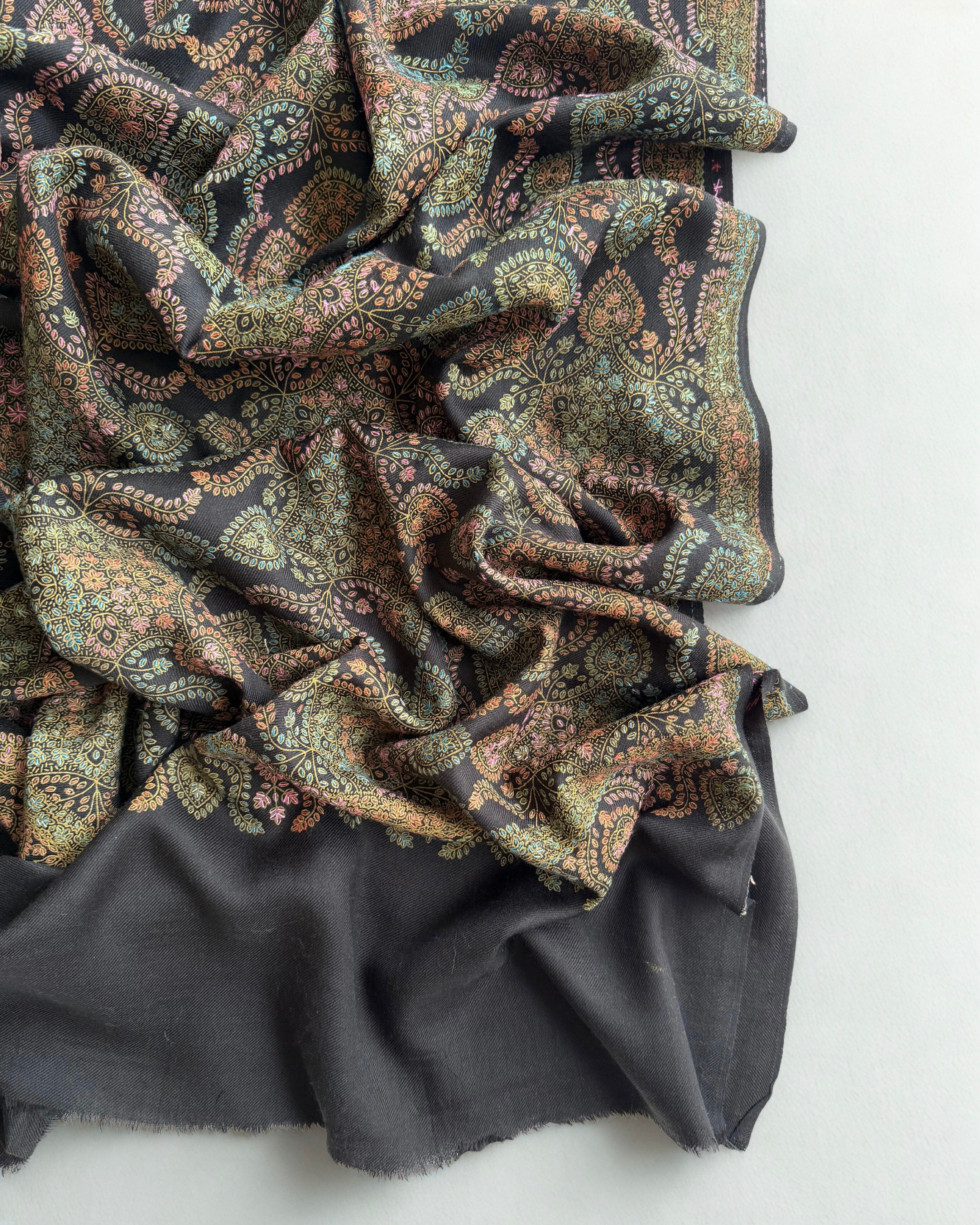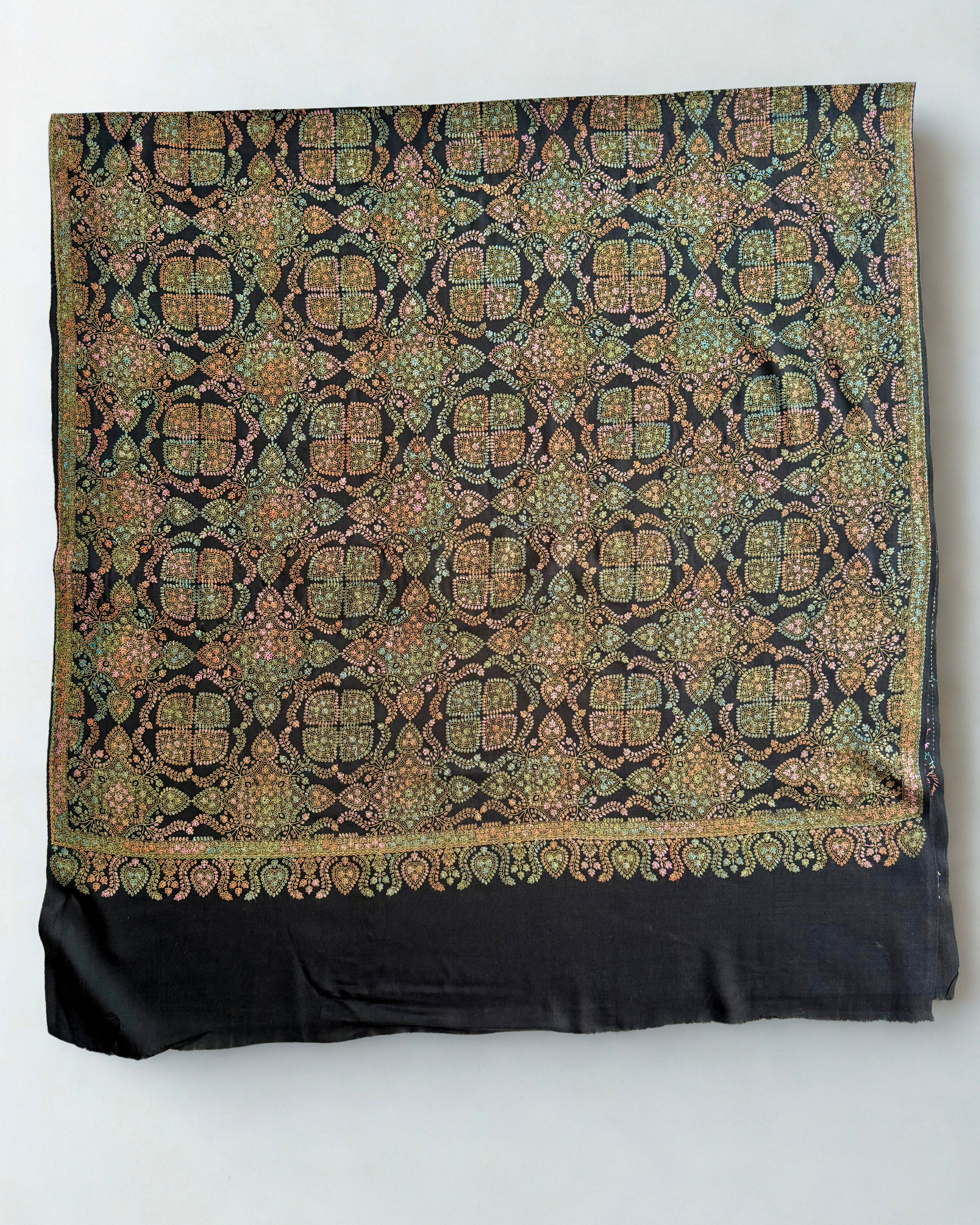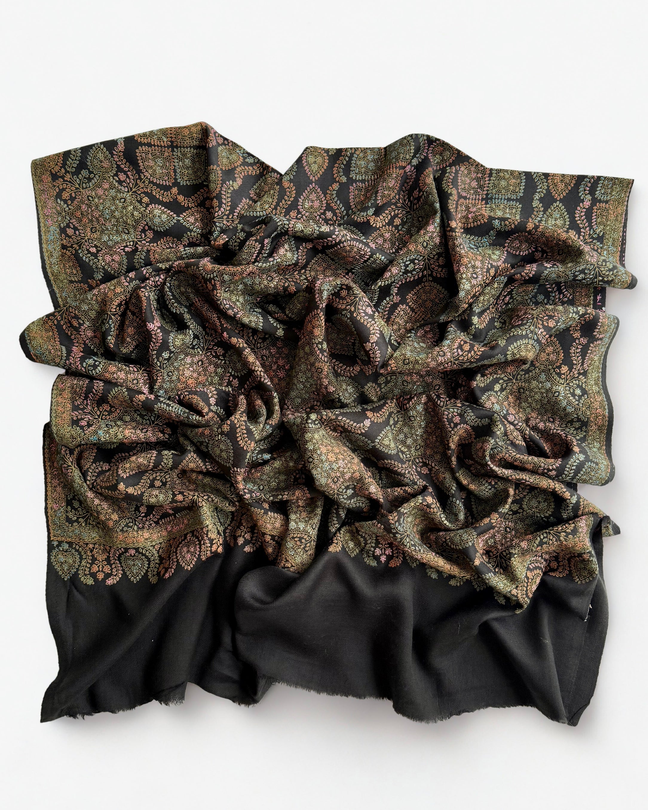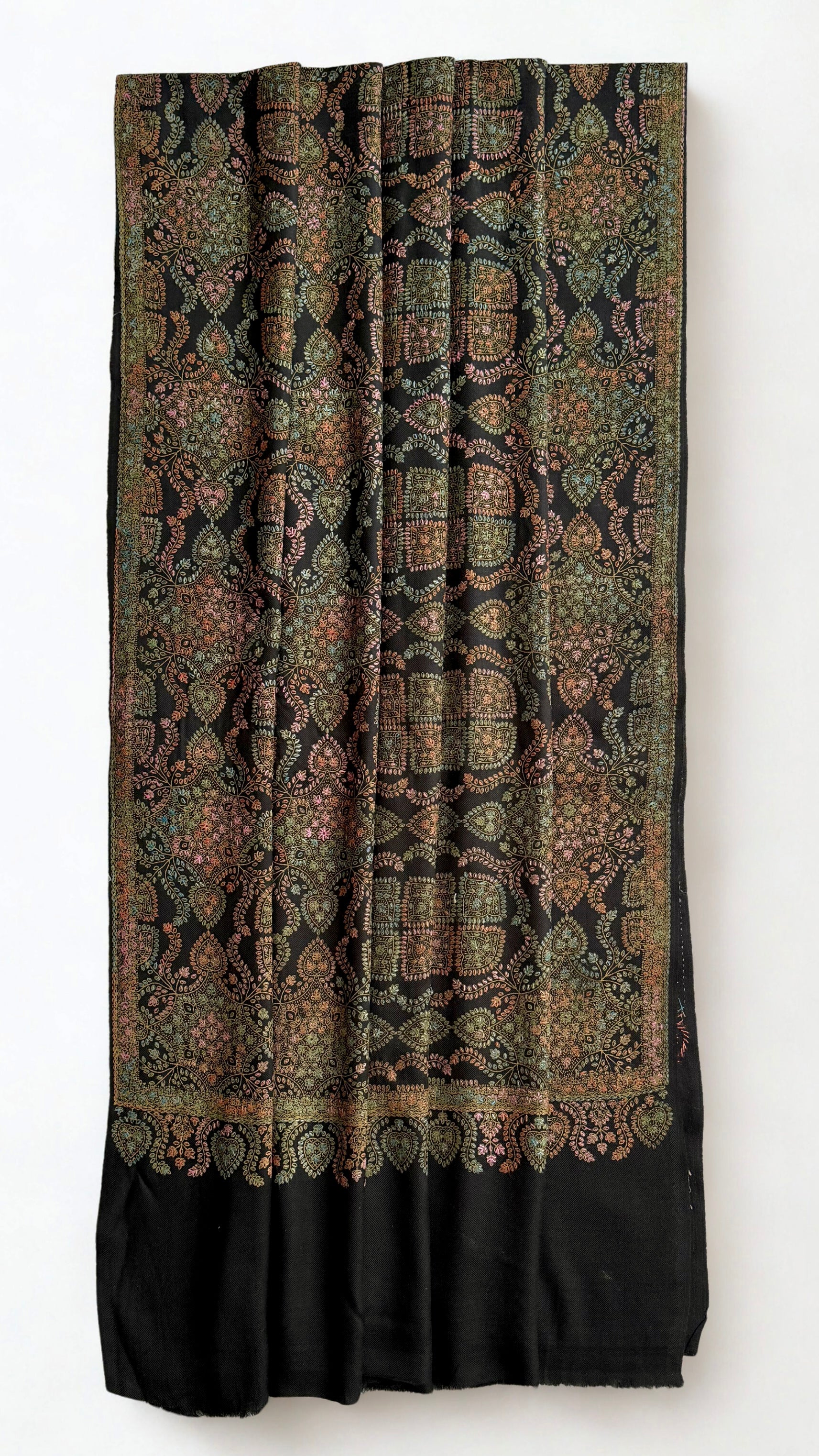 Pure Kashmiri Pashmina Full Embroidered - Midnight Black