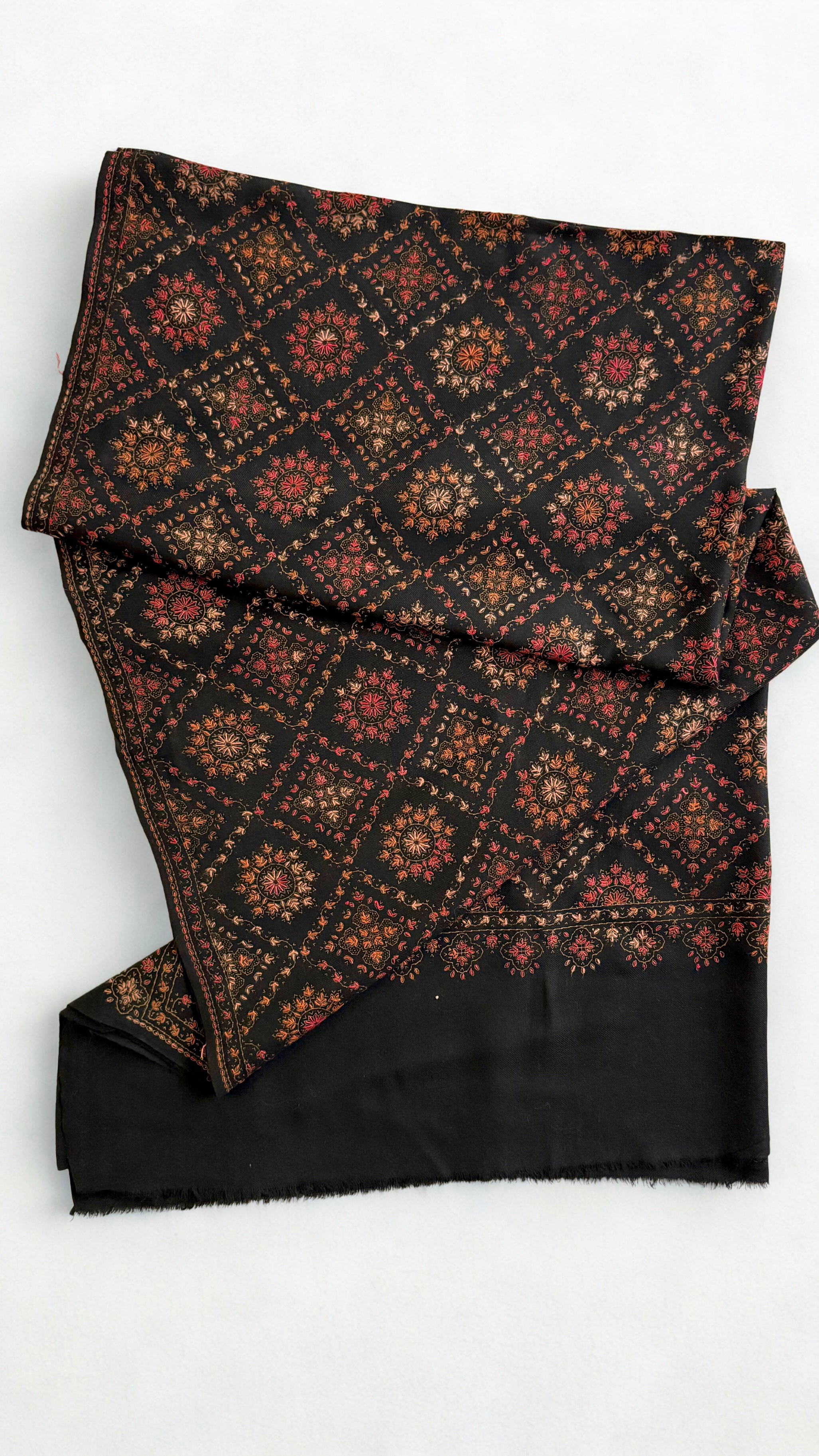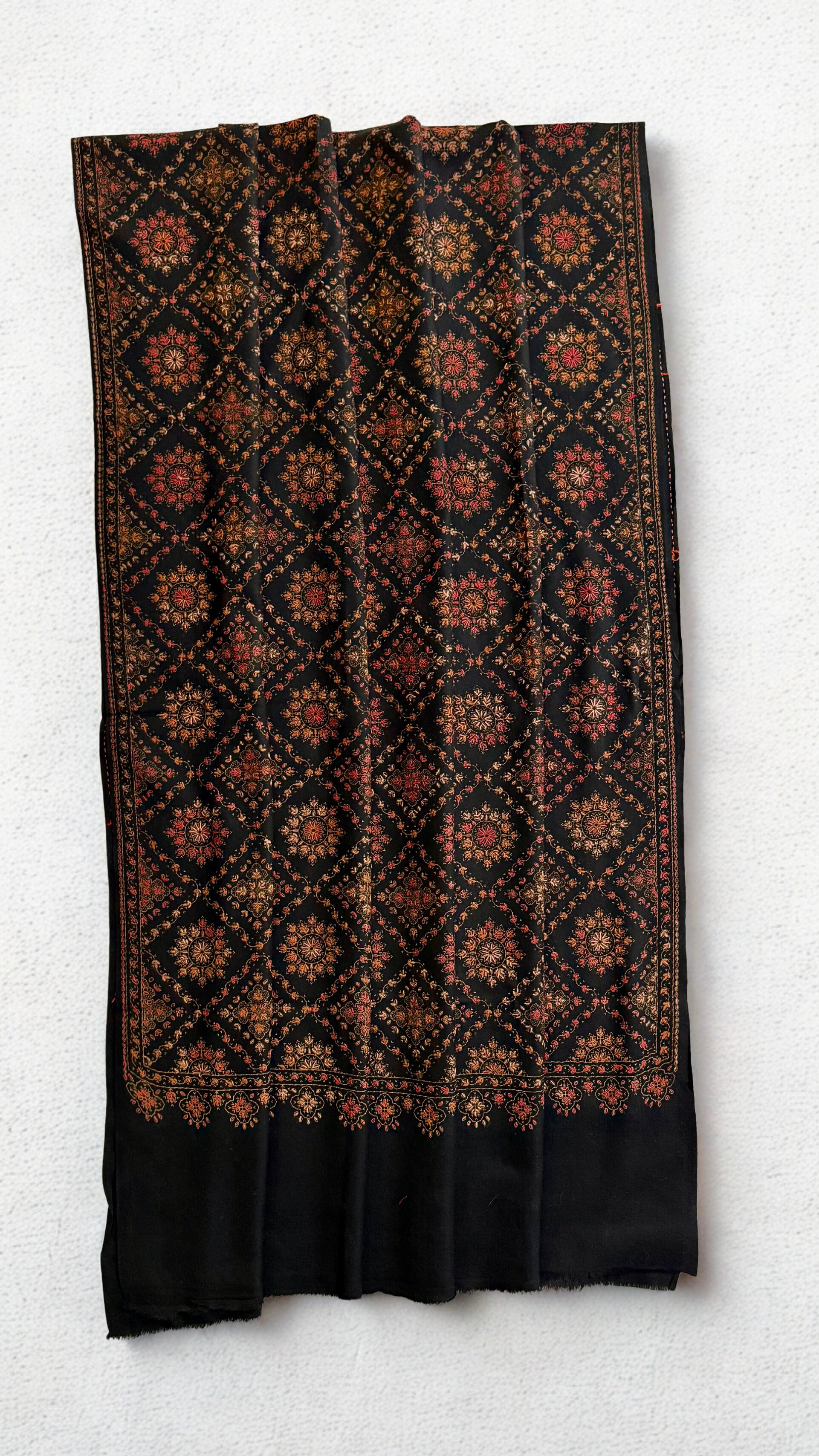 Drape yourself in authentic Kashmiri craftsmanship with this exquisite handwoven pashmina shawl. Meticulously embroidered by skilled artisans in Srinagar, each piece showcases intricate traditional patterns that celebrate centuries of heritage. The luxurious black fabric offers timeless elegance while providing exceptional warmth and comfort for any occasion. Perfect for those who appreciate fine craftsmanship and cultural artistry, this premium shawl elevates your wardrobe with sophistication and genuine luxury.