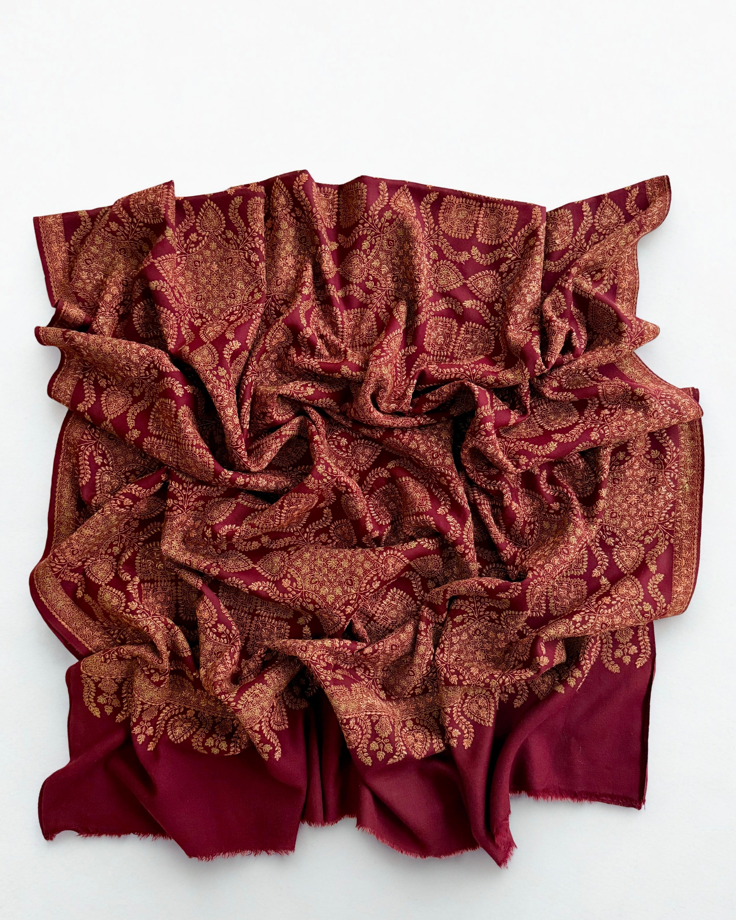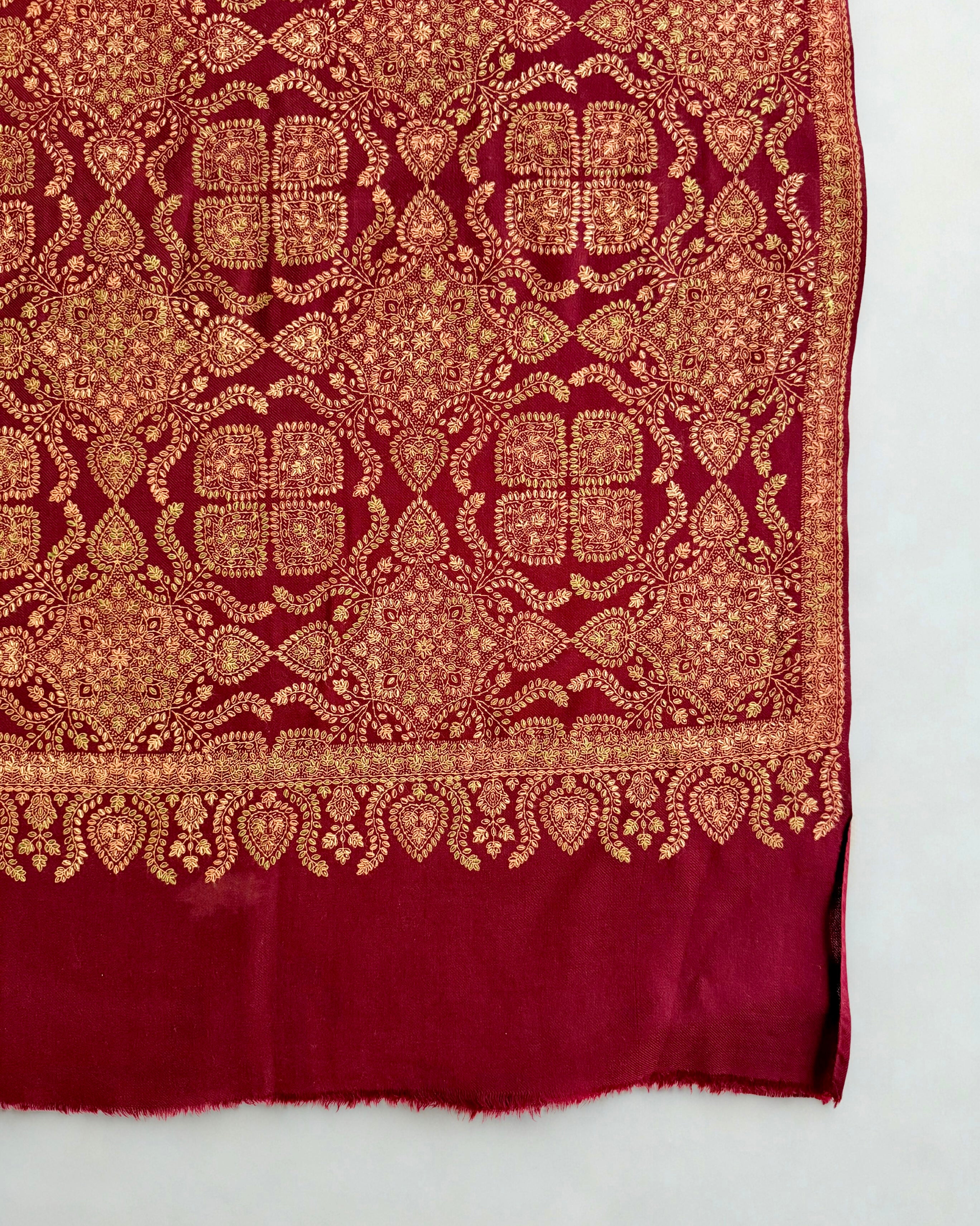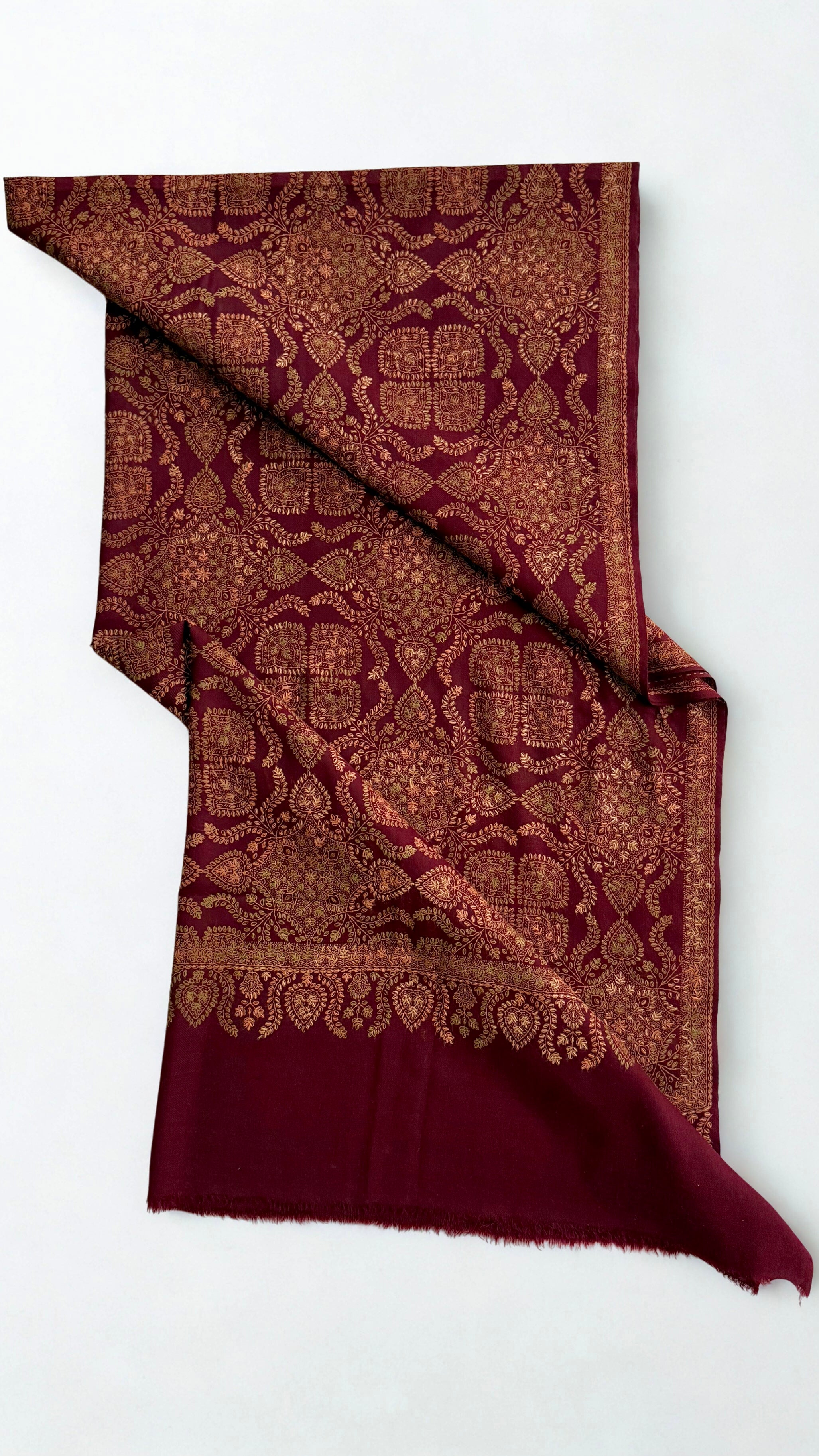 Drape yourself in pure Kashmiri artistry with this stunning handwoven pashmina shawl, meticulously crafted by master weavers in Srinagar. Adorned with intricate full embroidery, this burgundy masterpiece commands attention with its rich, luxurious hue. Feel the unparalleled softness against your skin while exuding timeless elegance and sophistication. Perfect for elevating any occasion, this shawl seamlessly blends warmth with bold style. Own a piece of heritage that refuses to fade—a statement of refined taste and fearless fashion sensibility.