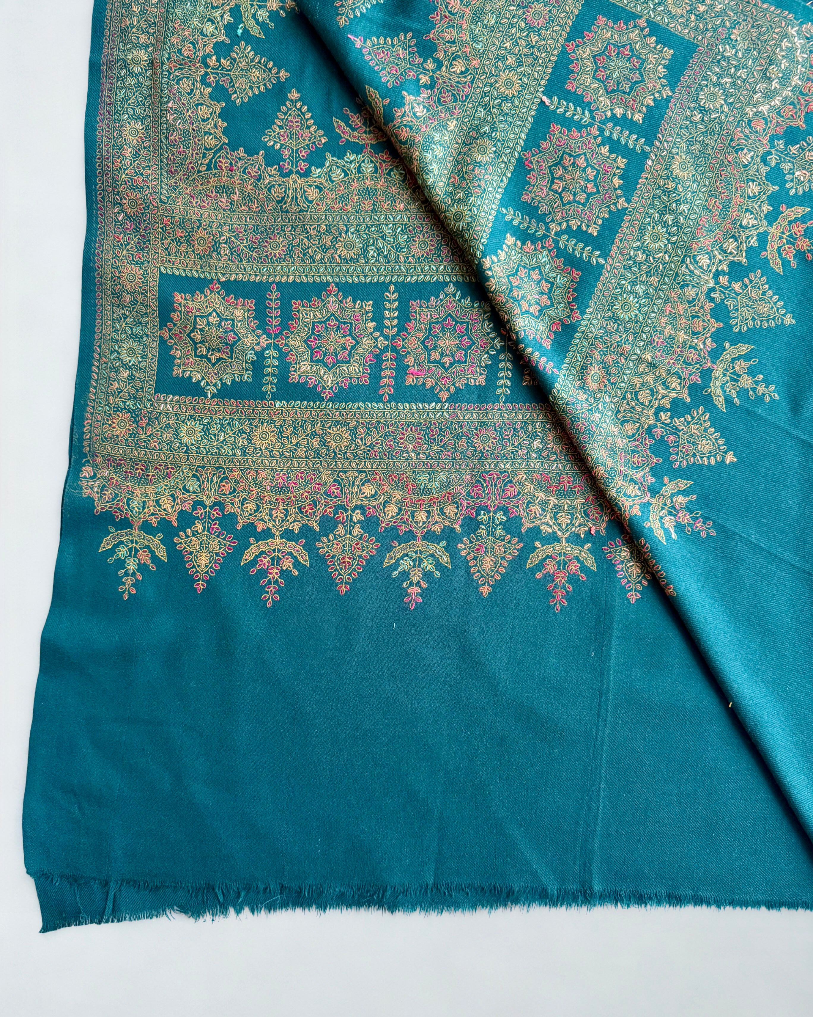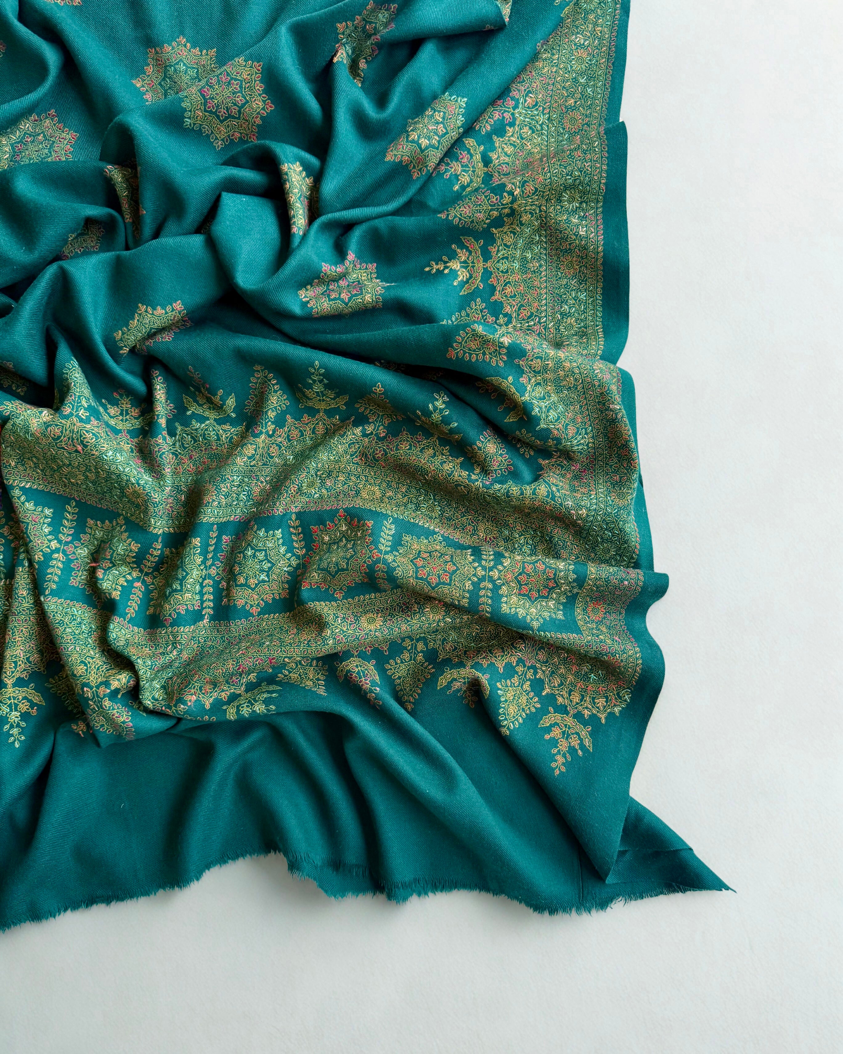 Drape yourself in the timeless elegance of authentic Kashmiri craftsmanship. This pure pashmina shawl, meticulously handwoven in Srinagar, showcases the region's legendary artistry in a captivating peacock blue hue. Luxuriously soft and supremely warm, it seamlessly transitions from casual gatherings to formal occasions. More than a garment, it's a celebration of heritage and cultural refinement—a piece that embodies generations of weaving mastery and enduring sophistication.