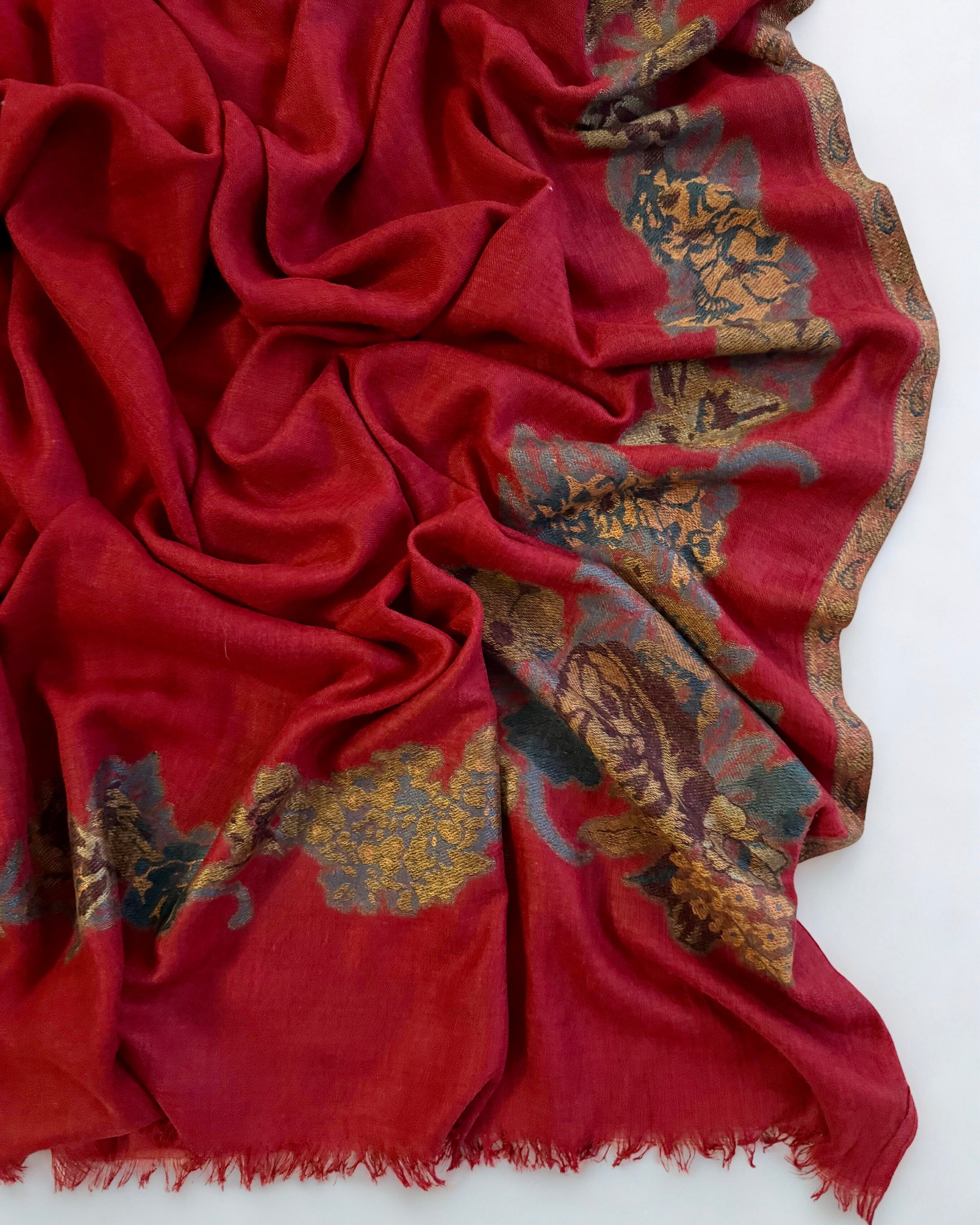 Discover uncompromising luxury with this authentic pure Kashmiri shahtoosh kani shawl in striking red. Meticulously hand-woven by master artisans using centuries-old techniques, every thread tells a story of heritage and excellence. The impossibly soft shahtoosh fibers envelop you in warmth while the intricate kani patterns showcase breathtaking artistry that elevates any occasion. This isn't merely a shawl—it's an investment in timeless elegance and cultural legacy. Indulge in the comfort and prestige that only genuine Kashmiri craftsmanship can deliver. Own a piece of living heritage today.