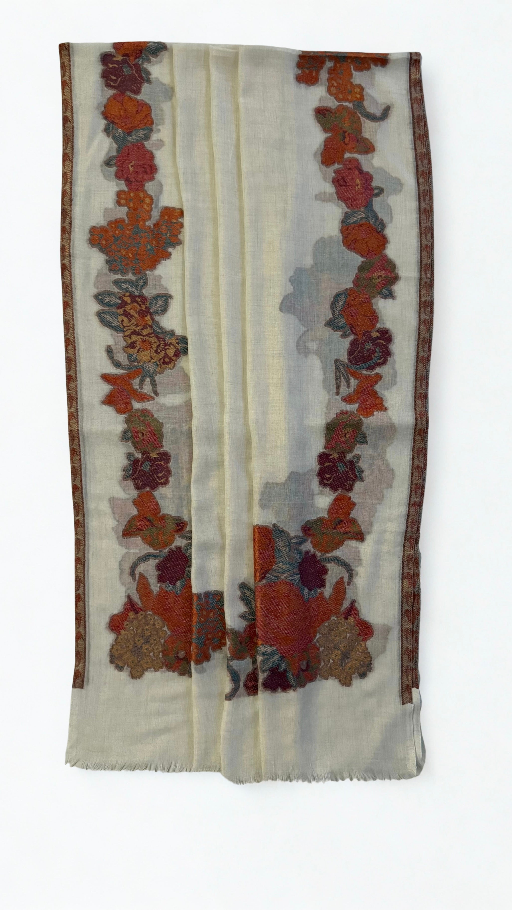 Discover the pinnacle of Kashmiri craftsmanship with this handwoven shahtoosh shawl in pristine white. Meticulously crafted using traditional techniques, this luxurious piece features exquisite kani embroidery adorning its borders, showcasing the artistry of master weavers. Shahtoosh's renowned fineness delivers unparalleled softness and breathability, making it exceptionally lightweight despite its sumptuous warmth. The elegant white canvas allows the intricate embroidered details to command attention, while the fabric's natural sheen adds understated sophistication. A timeless investment that embodies centuries of Kashmiri heritage, this shawl transcends seasonal trends and occasions, offering both comfort and cultural significance to the discerning collector.