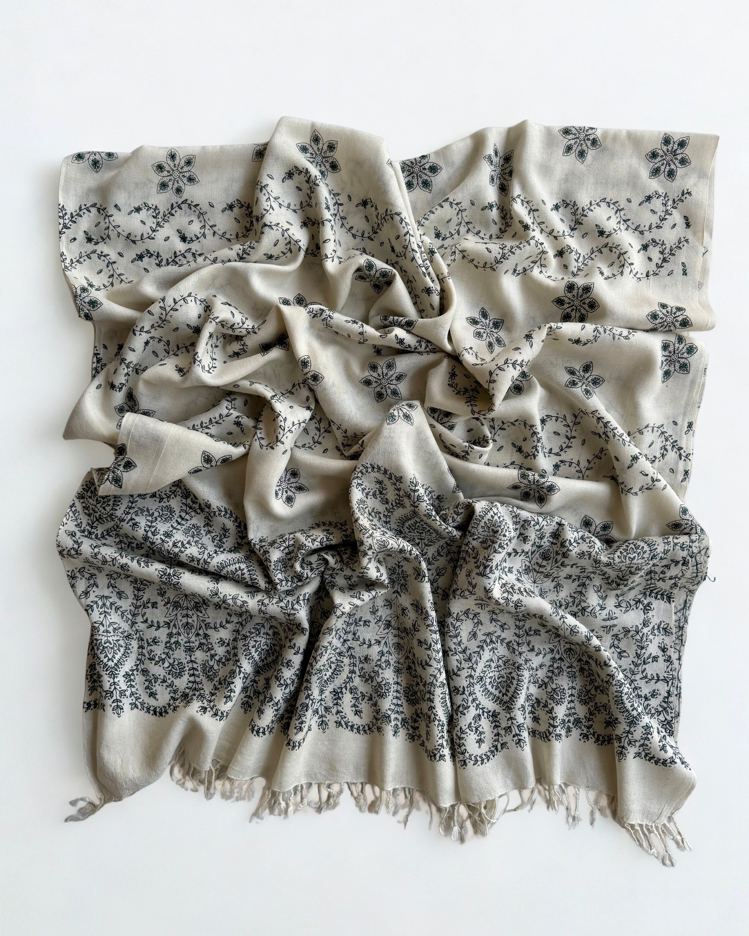 Swati Pashmina Full Embroidered in pristine white showcases traditional handwoven craftsmanship combined with intricate embroidery work. This luxurious pashmina delivers exceptional warmth and softness, making it an ideal choice for those seeking timeless elegance. The full embroidered design elevates any ensemble, whether draped casually or styled formally. Crafted with meticulous attention to detail, this classic piece offers both comfort and sophistication, perfect for discerning individuals who appreciate authentic artisanal quality and refined aesthetics.