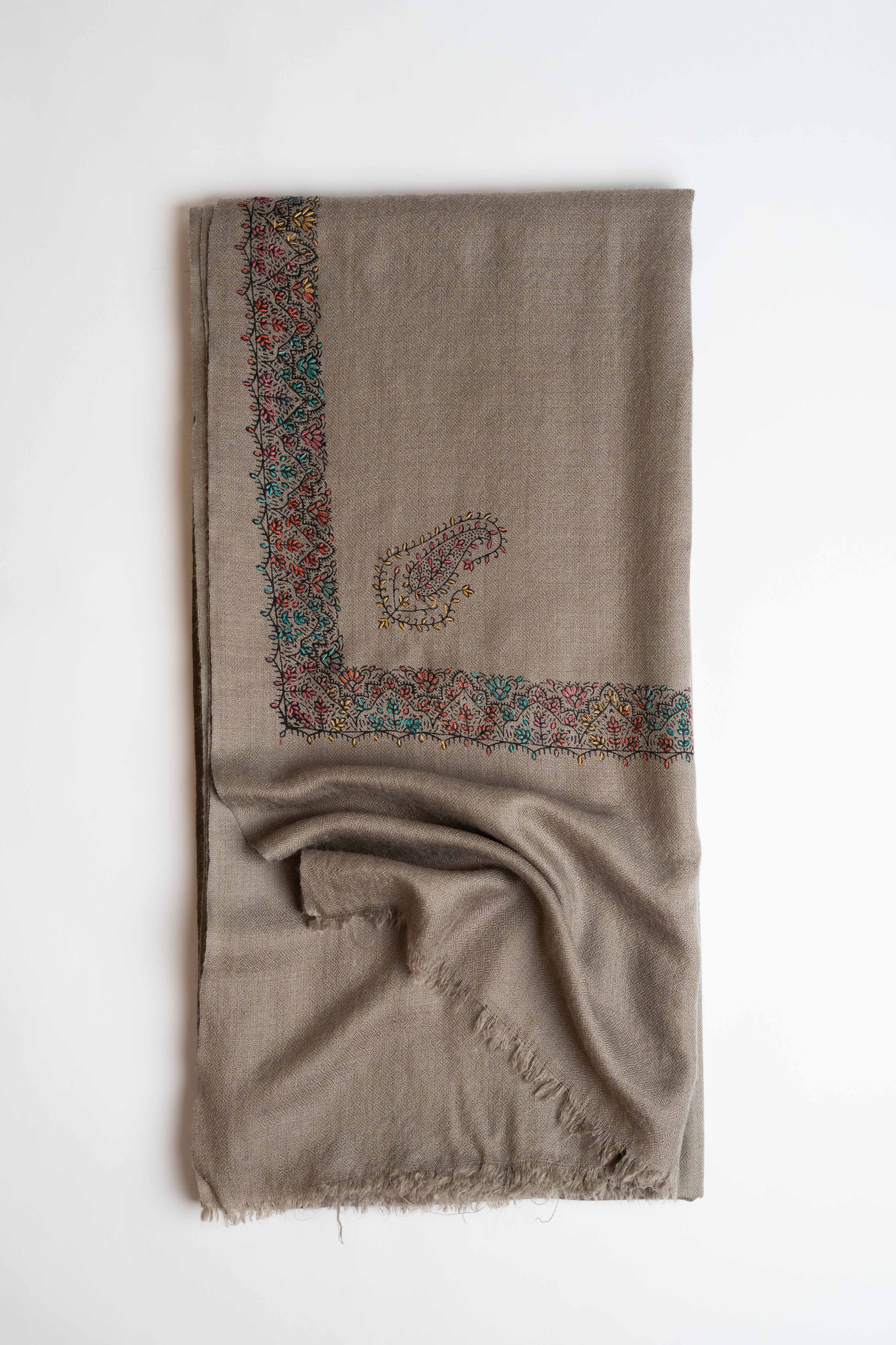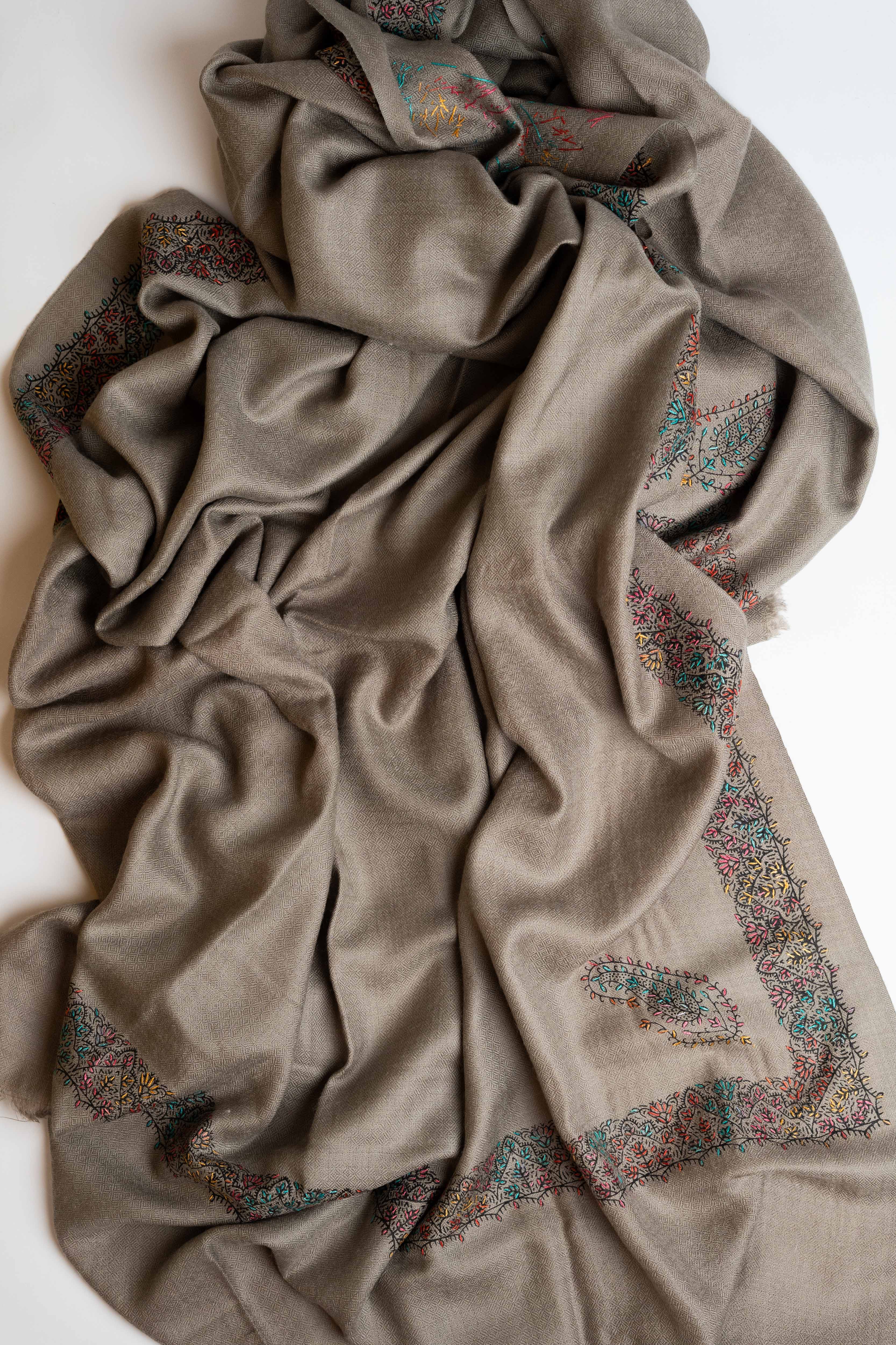 Introducing the Embroidered Grey Shawl—a luxurious accessory that seamlessly blends traditional craftsmanship with contemporary elegance. Handwoven from the finest materials, this shawl offers exceptional softness and warmth, making it an essential addition to any wardrobe.