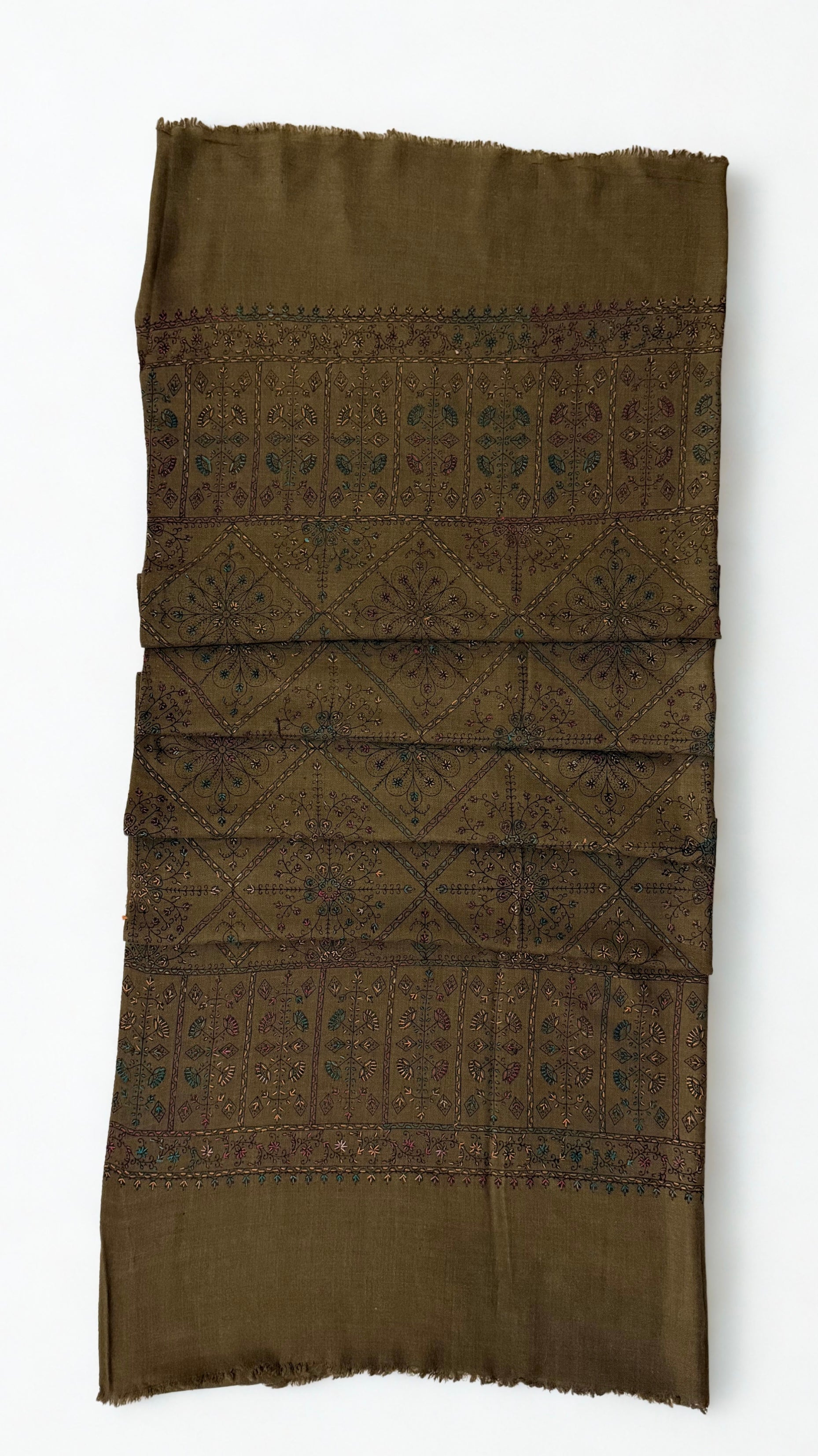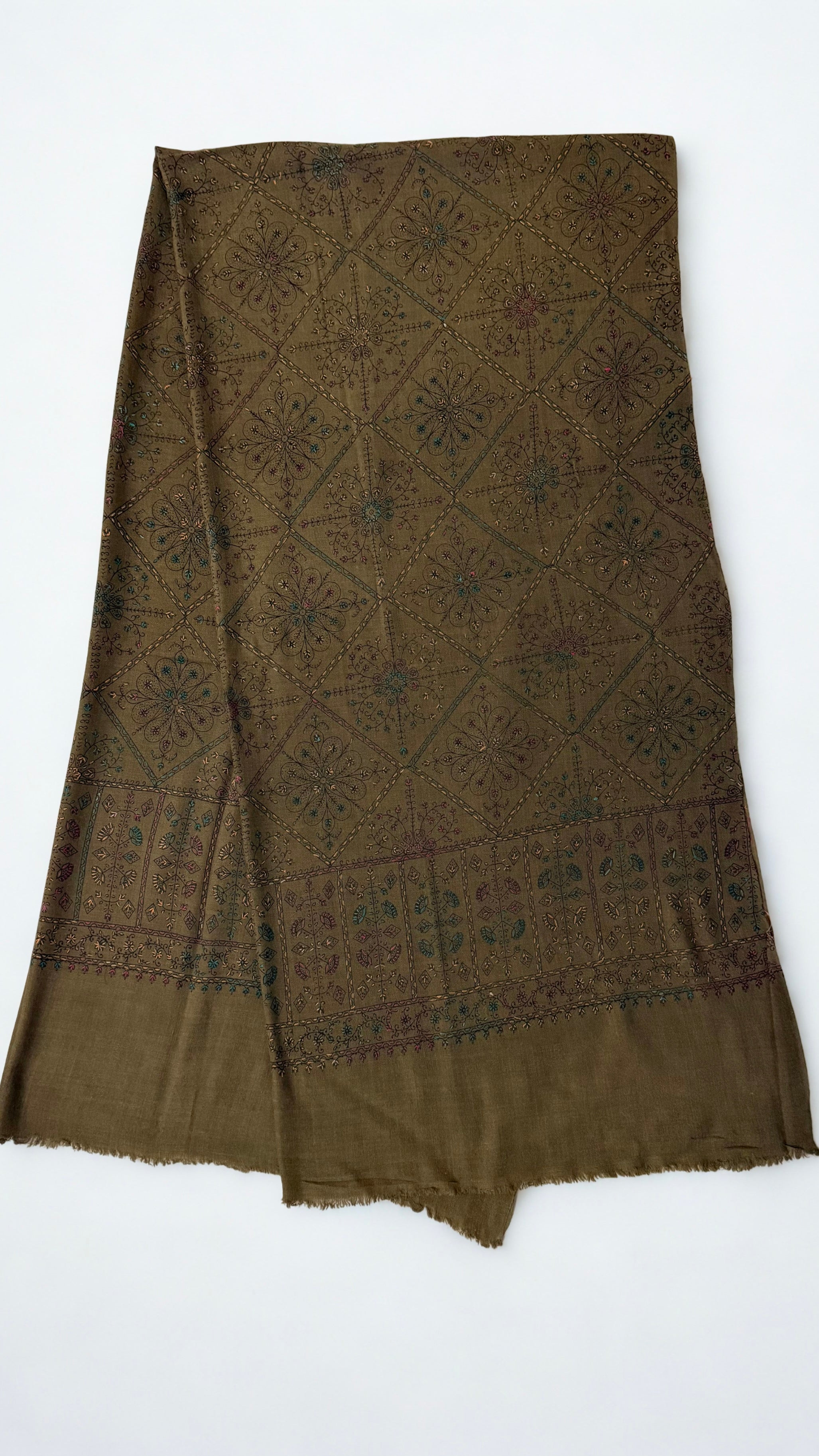 Swati Shahtoosh Full Embroidered - Khaki Brown
