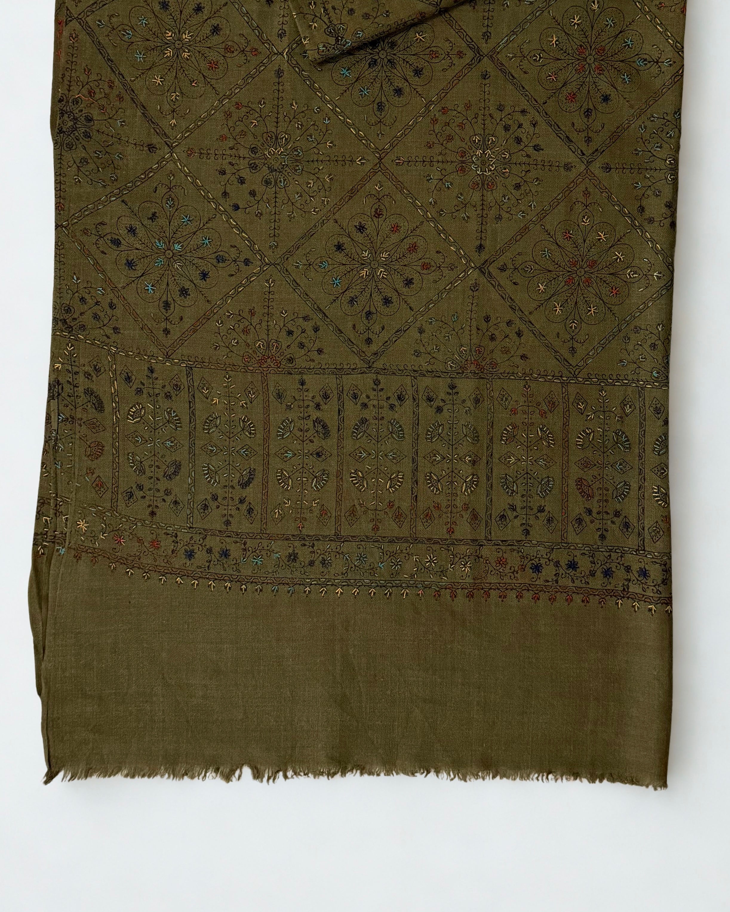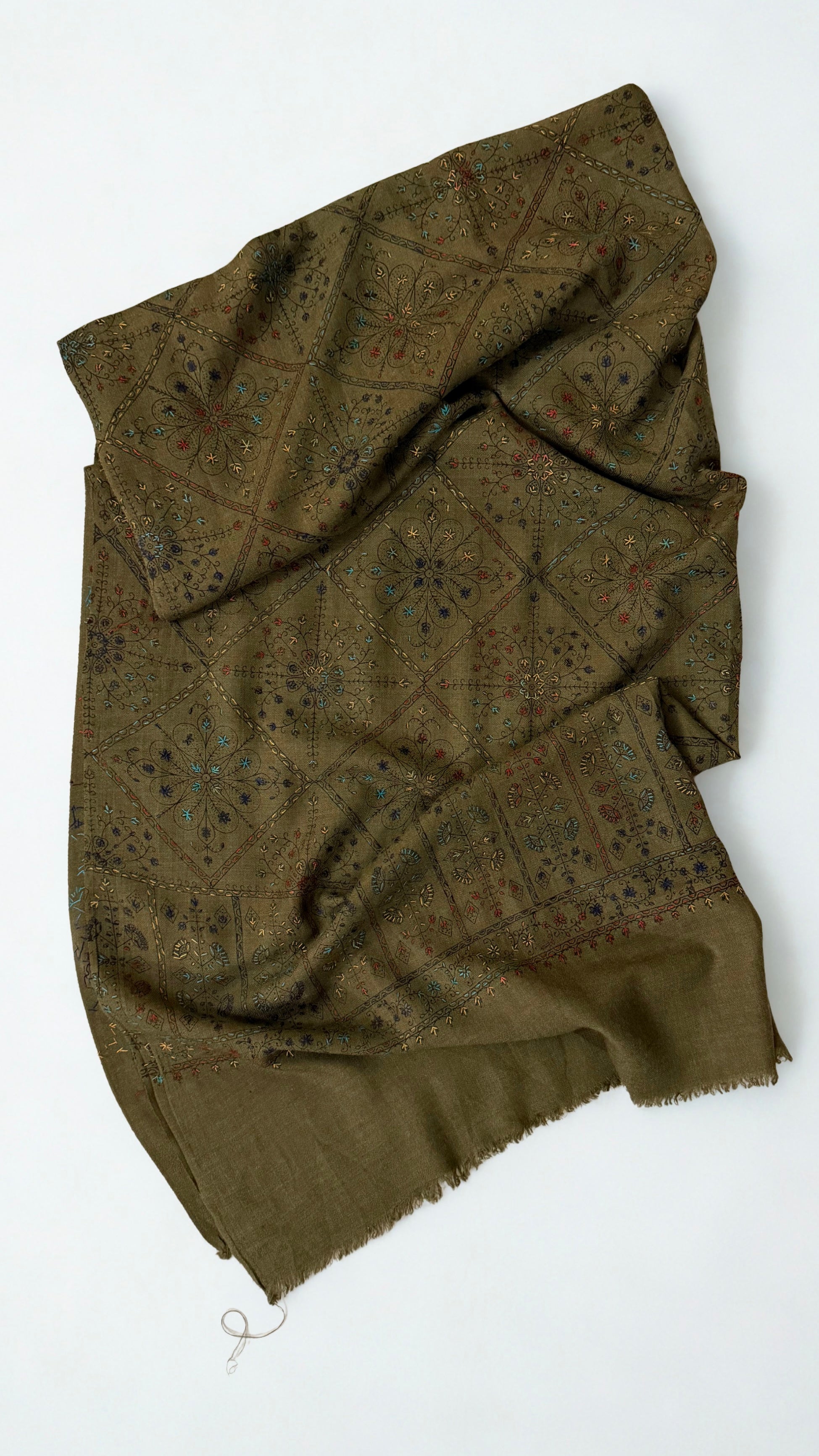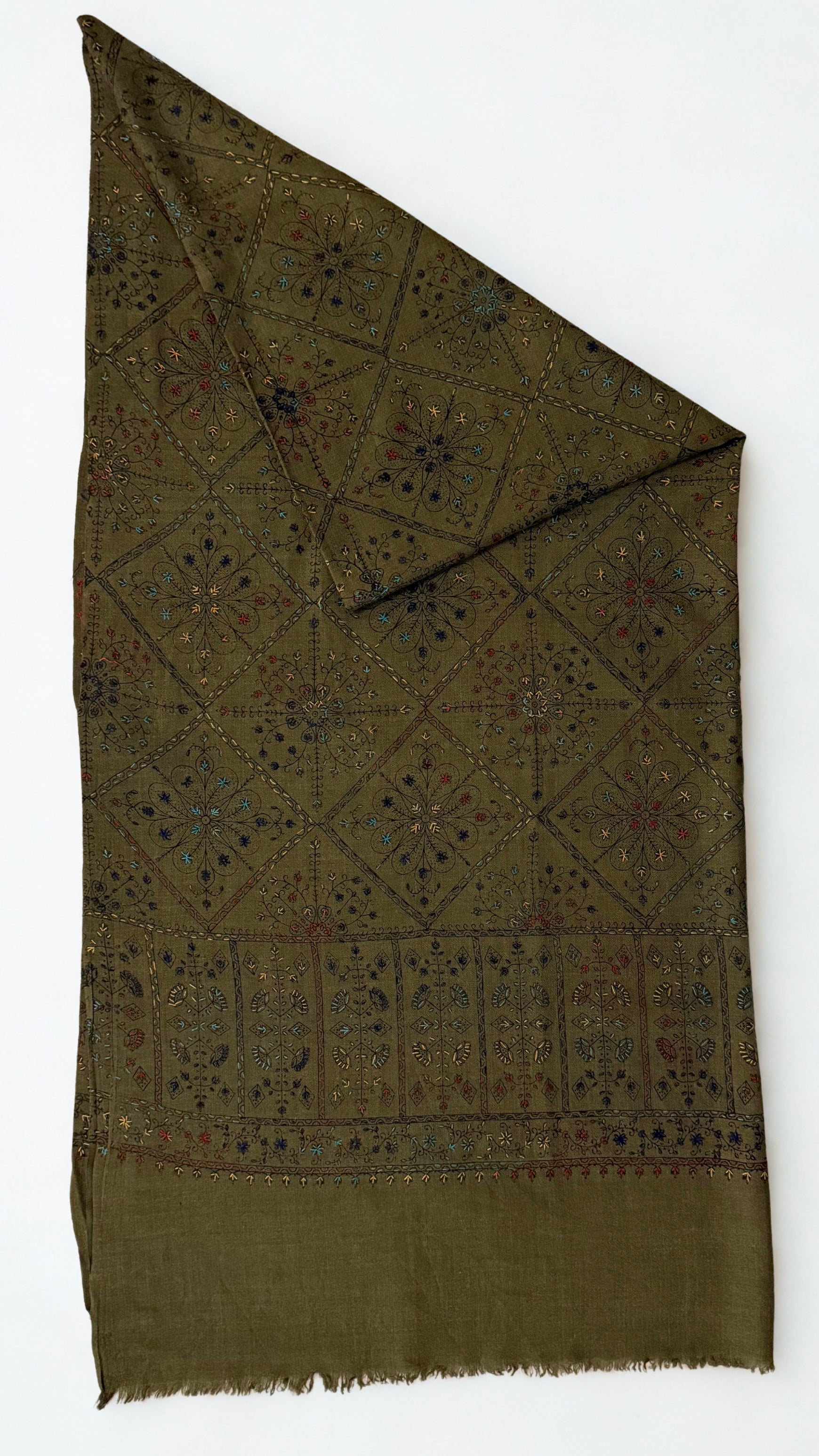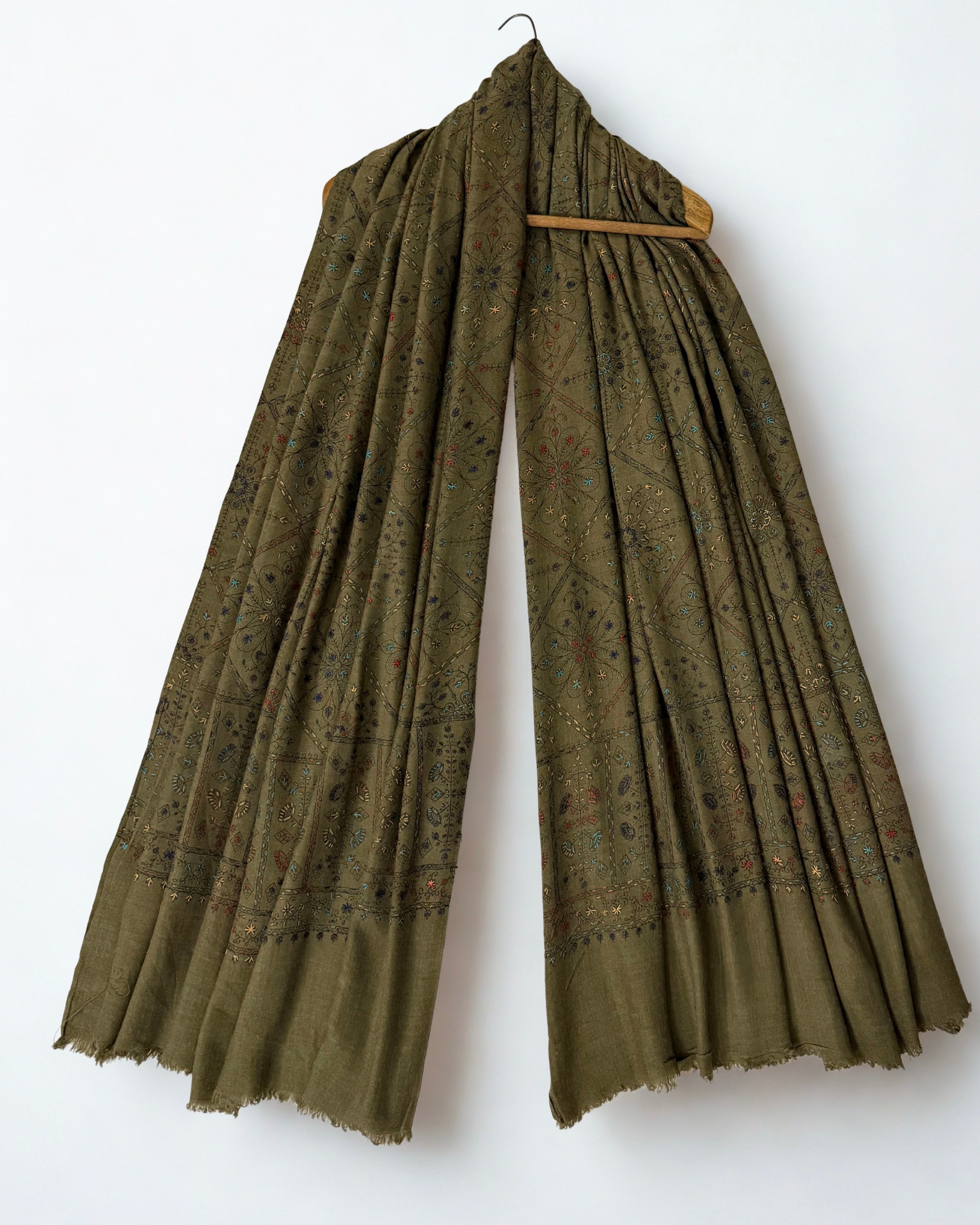 Swati Shahtoosh Full Embroidered - Khaki Green