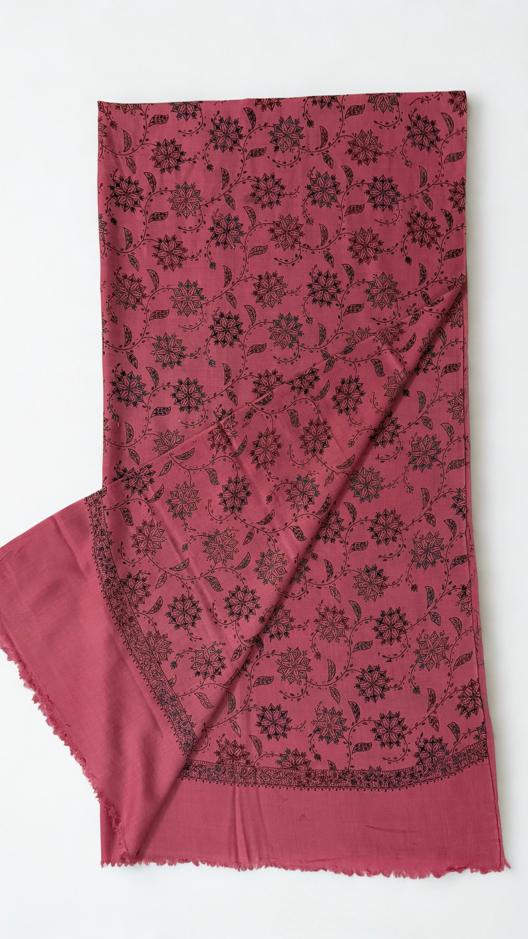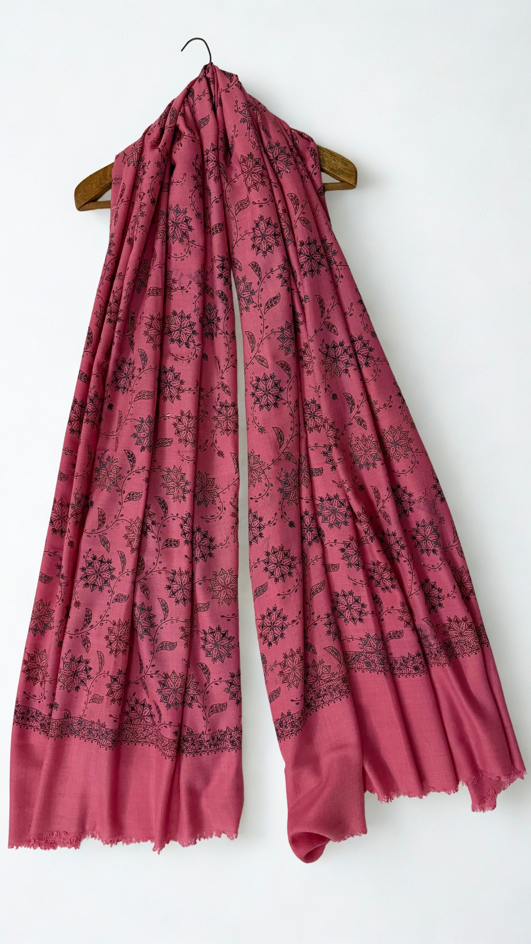 Swati Shahtoosh Full Embroidered - Pink Experience the pinnacle of luxury with this exquisite handwoven Shahtoosh from Salampur, Swat. Meticulously crafted using traditional techniques, each piece features intricate hand embroidery that showcases the artisan's mastery. The soft pink hue complements the delicate embellishments, creating a timeless aesthetic. Shahtoosh's renowned lightweight warmth makes it ideal for layering without bulk, while its classic design transcends seasonal trends. This investment piece combines uncompromising comfort with refined elegance, perfect for those who appreciate authentic craftsmanship and enduring style.