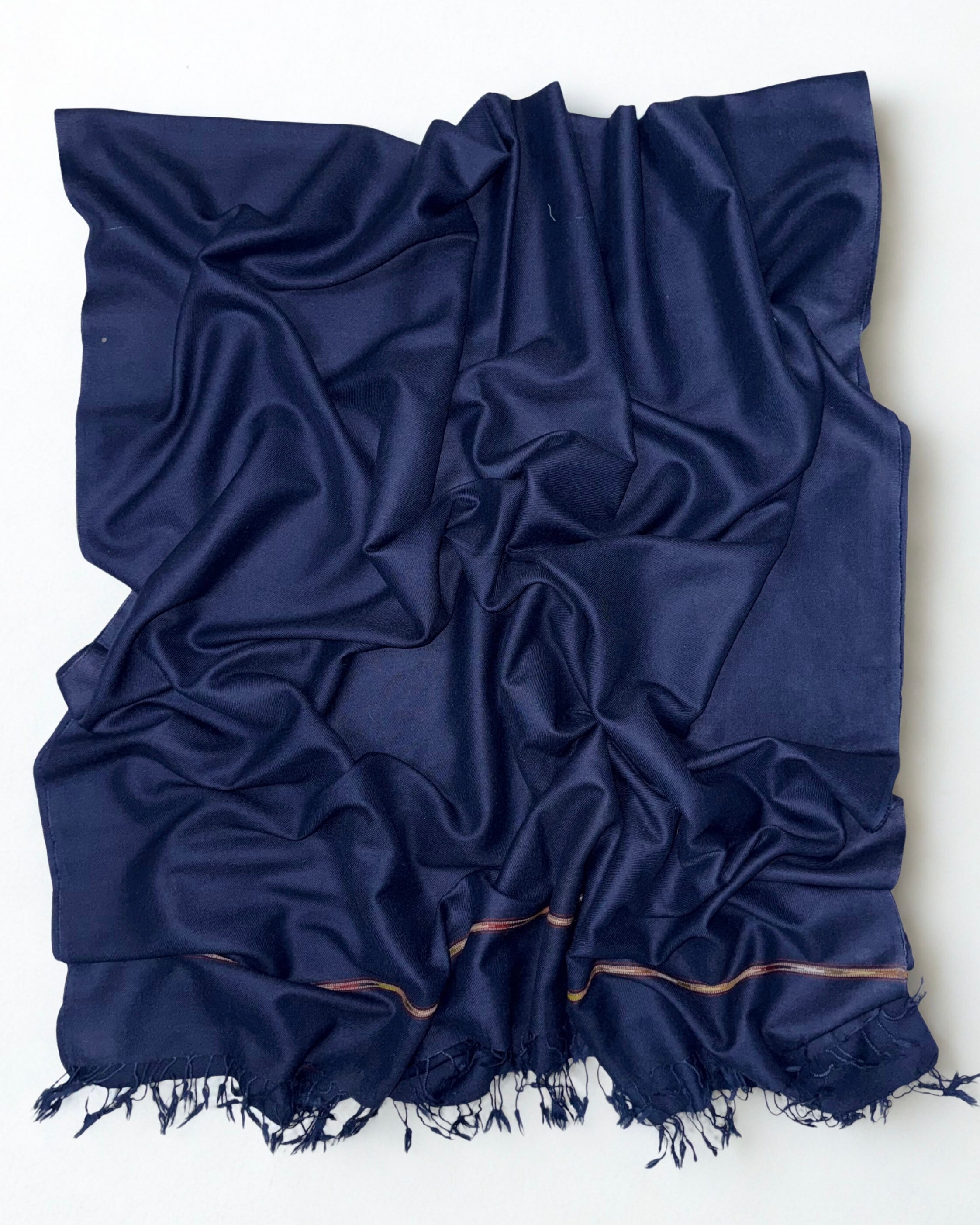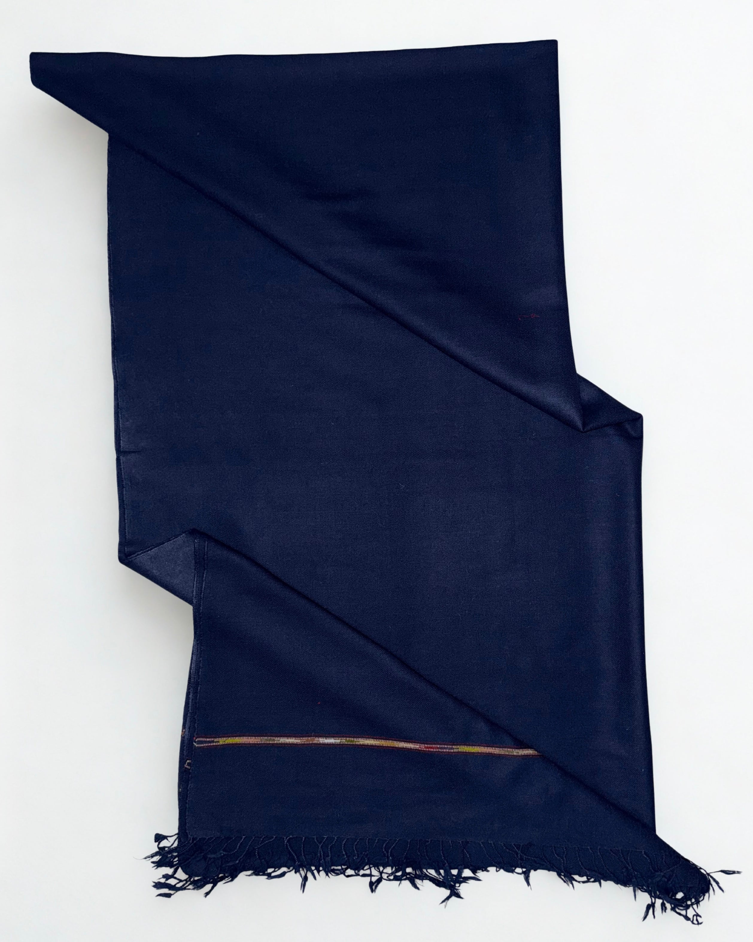 Crafted by skilled artisans in Swat's renowned Salampur weaving community, this lambswool shawl exemplifies traditional handloom excellence. Woven from premium lambswool, it delivers exceptional warmth without bulk, making it ideal for layering through cooler seasons. The rich navy blue hue showcases sophisticated elegance, while the meticulous handweaving creates a visually captivating texture that rewards close inspection. Built to endure years of wear, this piece combines durability with refined comfort—a testament to masterful craftsmanship that elevates any wardrobe with understated luxury.