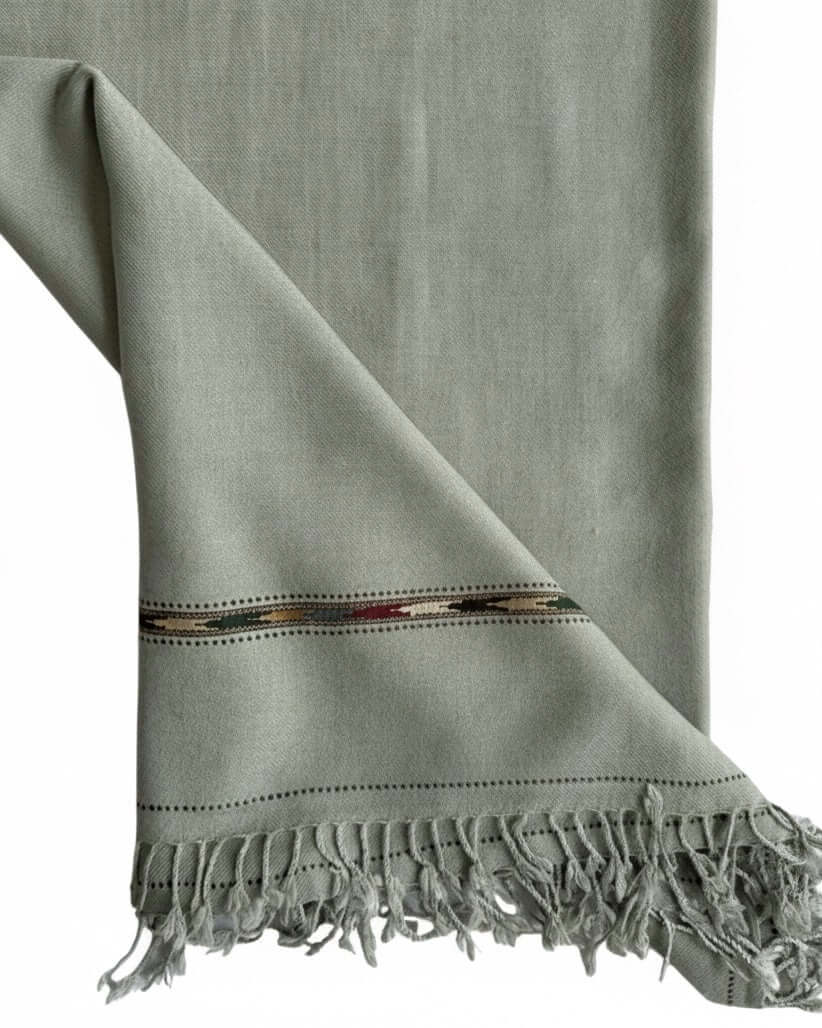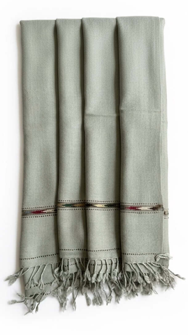 This Mix Pashmina Shawl in sage green is expertly handwoven from premium pashmina wool in Salampur, Swat. Renowned for its fine fiber quality, the wool ensures unparalleled softness and warmth, making the shawl both functional and luxurious. Its subtle color and meticulous craftsmanship reflect traditional techniques, offering a sophisticated accessory that complements refined tastes and enhances any ensemble.